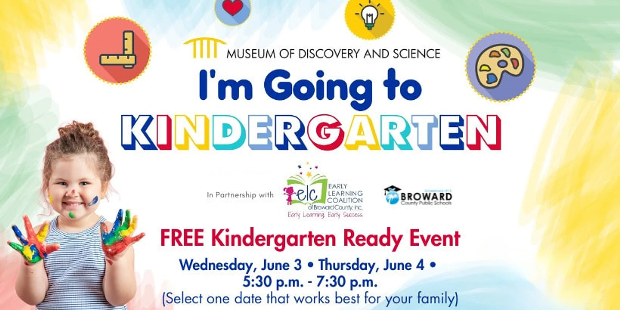 @ FREE Kindergarten Ready Event In Partnership with Children will enjoy sneak peeks into kindergarten while parents learn to prepare for the transition. Explore the Museum and gather school resources from community partners. WHO: Kindergarten-Bound Children and Their Family (4 total) WHEN: Wednesday, June 3 OR Thursday, June 4 • 5:30 p.m. – 7:30 p.m. (Select one date that works best for your family) WHERE: Museum of Discovery and Science Register Here STEM Educational Activities • Giveaways • School Readiness • Games & More • Dinner Provided In collaboration with Please note that parking is not included with event registration. Attendees may utilize various parking options surrounding the Museum. Be aware that parking rates vary, and attendees are responsible for covering their own parking expenses Museum of Discovery & Science 954-467-6637 View Organizer Website Add to calendar Google Calendar iCalendar Outlook 365 Outlook Live