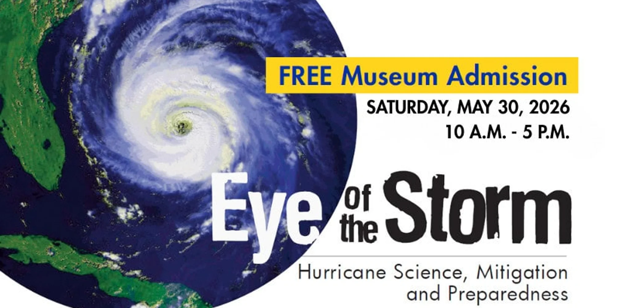 @ Hurricane season is here and MODS is teaming up with FIU’s International Hurricane Research Center and the Florida Division of Emergency Management! Future storm chasers, meteorologists and engineers will dive into hurricane science. Then, explore sustainability and climate adaptation in Florida’s Climate Future City, sponsored by the Environmental Defense Fund. Families can design and test resilient cities incorporating innovative features to withstand extreme weather. Young meteorologists (ages 0-6) can discover how hurricanes form and create “My Hero Helper” portraits. Join us for a hands-on journey into the science of storms, resilience and building a sustainable future! Cost: Free Admission Day Register Here Sponsored by In Partnership with Museum of Discovery & Science 954-467-6637 View Organizer Website Add to calendar Google Calendar iCalendar Outlook 365 Outlook Live