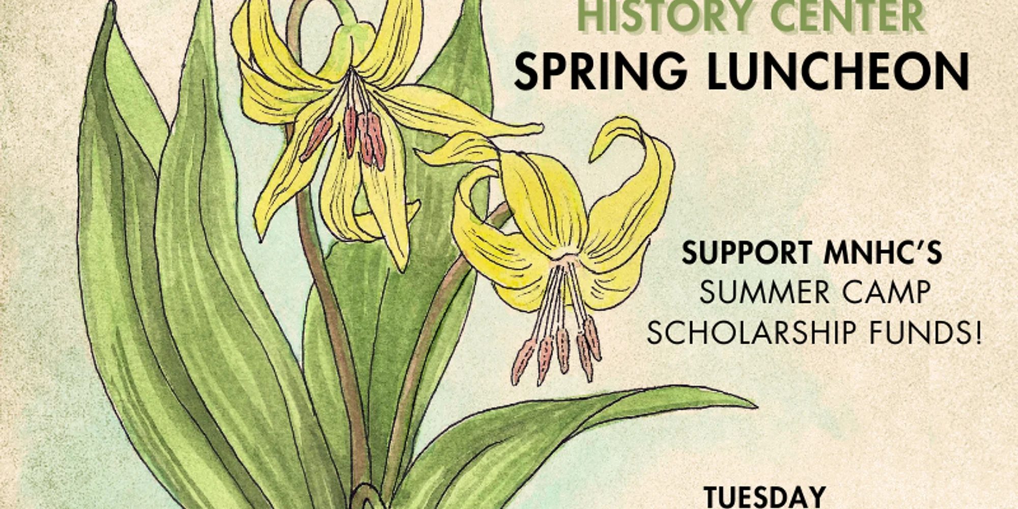 Date: Tuesday, April 21st, 2026 Time: 12:30-2:30 p.m. Location: Missoula Fairgrounds, Home Arts Building – Catering by River and Range PURCHASE YOUR TICKETS HERE! Join us for the 14th Annual Montana Natural History Center Spring Luncheon to support our summer camp scholarship funds! Gather with friends for a good purpose and enjoy a lovely, fresh lunch in a beautiful setting. Taking advantage of our luncheon location, guests will have the opportunity to join experts on a tour (optional) of the nearby Rocky Mountain Gardens to learn more about Montana’s native plants and unique ecosystem. See tour details below. In addition, all guests are also entered into a raffle for a chance to win a gift bag provided by Meadowsweet Herbs! All proceeds go directly to our camp scholarship funds. When you purchase tickets for this event, you are donating to make a real and tangible difference in a child’s life. The Montana Natural History Center is committed to ensuring that every child has the opportunity to hear meadowlarks warbling, breathe in the vanilla fragrance of sun-warmed ponderosa pine bark, and fall in love with Montana’s wild places. Our compassionate, fun, and experienced Seasonal Naturalists help guide summer campers through Missoula’s natural spaces and encourage curiosity through the lens of an artist, writer, scientist, and naturalist. Your attendance at our luncheon means we can help break down financial barriers to ensure our camps are exceptional and accessible for all families in our community. Sponsorship Opportunities Are you a business interested in being a sponsor for MNHC’s Spring Luncheon? Please contact our Development Director, Kellen Beck, at kbeck@montananaturalist.org. Tours of The Rocky Mountain Gardens Following our lunch, guests are invited to break into small groups and join botanists in a walk through The Rocky Mountain Gardens (optional). A HUGE thank you to the Missoula County Department of Ecology & Extension for volunteering their time and expertise to share the gardens with our spring luncheon guests! Garden Tours are optional and are offered as an added way for MNHC to show our gratitude for your attendance at our Spring Luncheon and support of our scholarship program. Sign-ups are first-come first-serve, so don’t wait to reserve your preferred option. If you would like to opt out of a tour, please choose the option: Opt Out of Garden Tours Tours will follow lunch. Each tour is ~30 minutes long and requires roughly 10 minutes of walking outside (come rain or shine), with the exception of the INDOORS: NATIVE PLANTS and SPRING BLOOMS. This option remains at the Home Arts Building. MNHC is guided by our values that promote learning, growing, and encouraging communities to discover new experiences and different environments in our natural world! We hope you will enjoy your garden tour and that it grows your connections and curiosity with our remarkable Montana! Choose from the following tour options. (Garde...