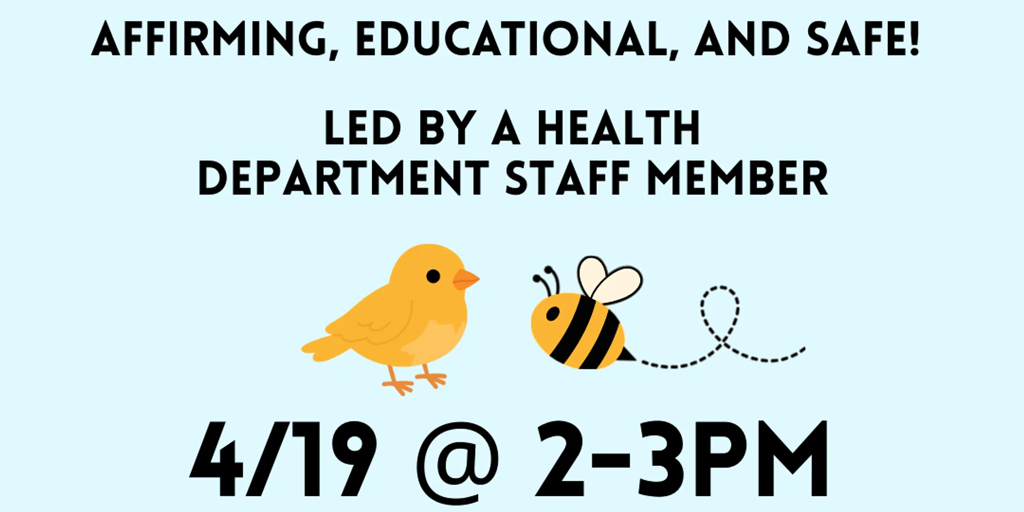 Join us for sex ed class, taught by a Health Department staff member. Kids 12+ will learn the birds and the bees in a safe, affirming environment where questions are encouraged! Sex ed helps kids to understand themselves and their bodies, the concept of consent, and what is and isn't healthy to experience. It also decreases instances of teen pregnancy! If your kiddo has questions about the birds and the bees, or if you're looking for the right time to introduce them to the concept, this is a great class for you! Parents and guardians must accompany their kids. Ages 12+ are welcome! View the event waiver here! RSVP Now!