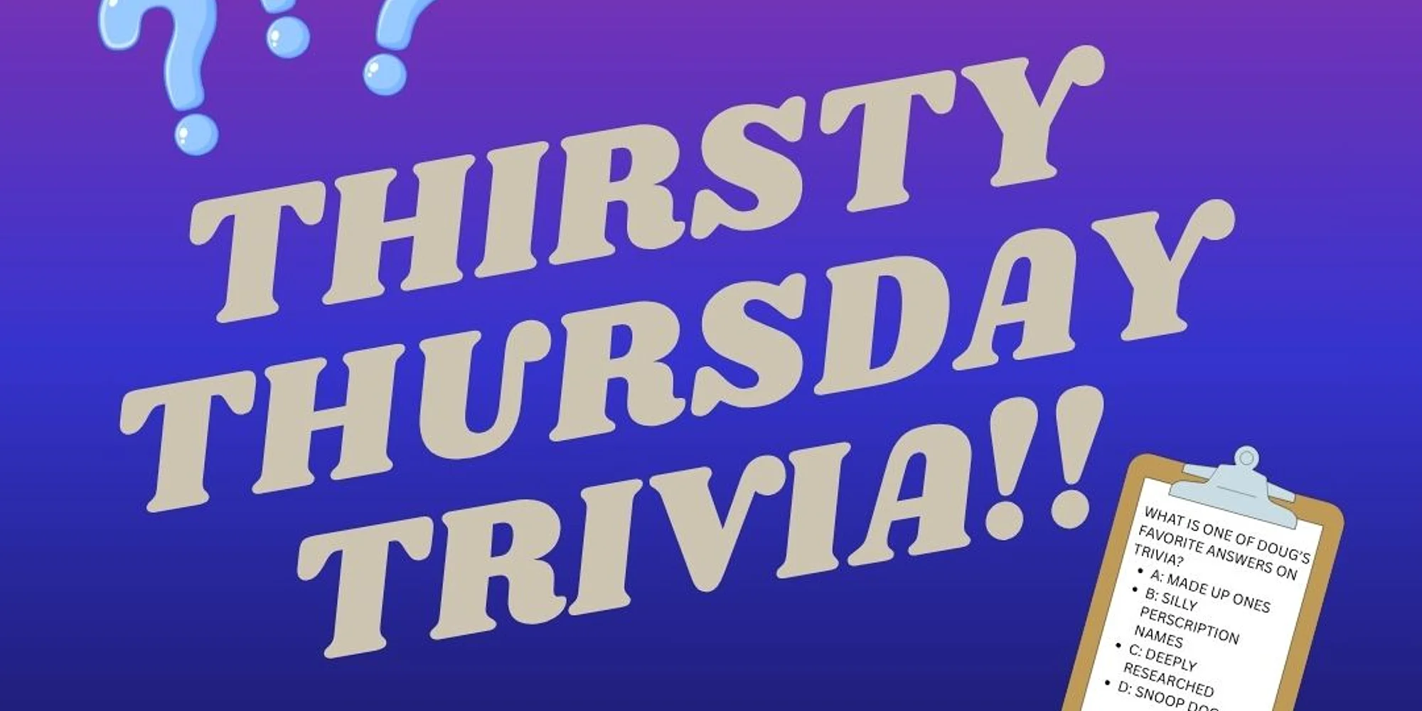@ Our Trivia is 3 rounds, all Multiple Choice. Crafted by and presented by our own Doug Conrad. Come out for a night of learning and laughter! Every 1st and 3rd Thursday. Starts at 5:00 Three rounds, 10 questions each. Play 1 or 2 or all 3 rounds! Add to calendar Google Calendar iCalendar Outlook 365 Outlook Live Details Date: Time: