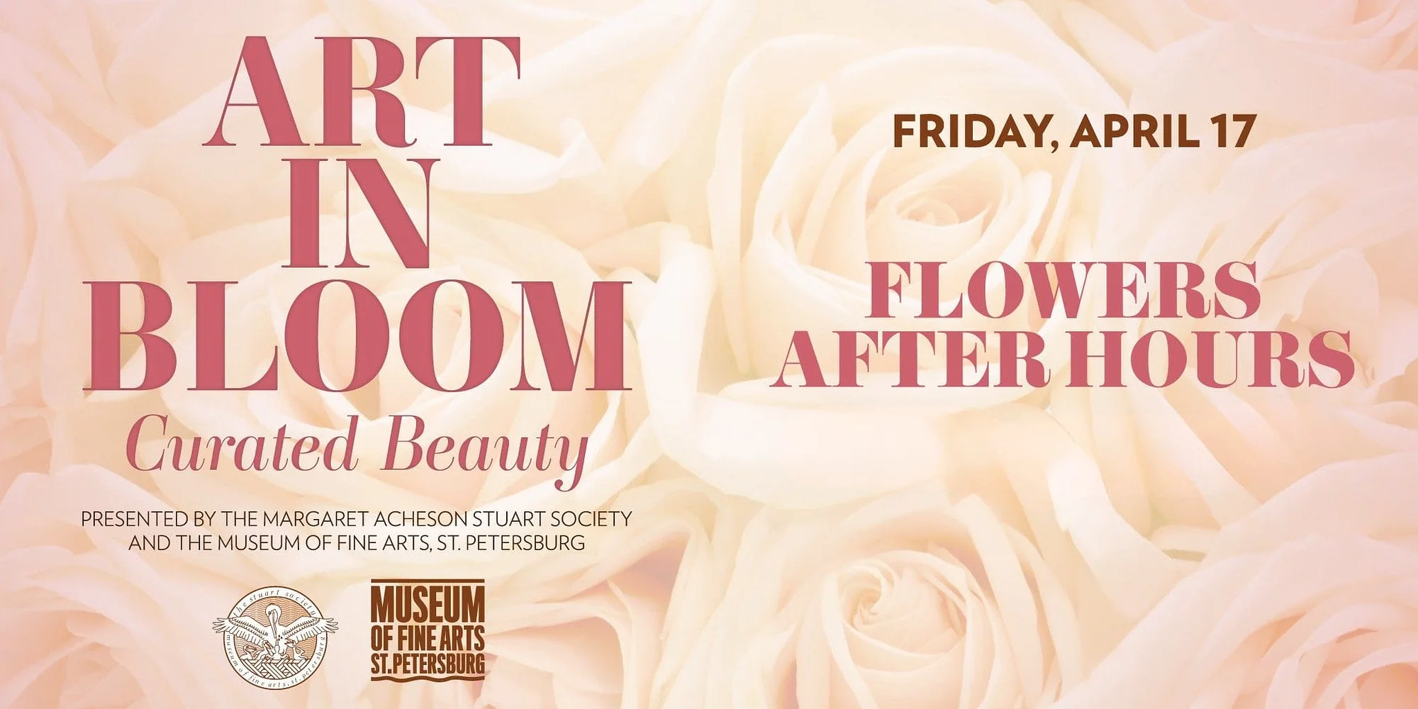 Join us for “Blooming Galleries,” an enchanting evening where art comes to life. Your night begins by previewing the galleries filled with stunning floral interpretations, followed by dinner and an open bar in the beautiful Marly Room and Gardens. Enjoy vibrant exhibits, garden-inspired elegance, and a night of dancing as The Black Honkeys Band takes the stage. Celebrate creativity, community, and lively music in an unforgettable night designed to bloom! Wear your elevated attire and bring your dancing shoes! Friday, April 17, 2026 6:00 pm: View the Galleries 6:30-9:30 pm: Dinner and Dancing in the Marly Room and Gardens Museum of Fine Arts, St. Petersburg $200 per person GET TICKETS