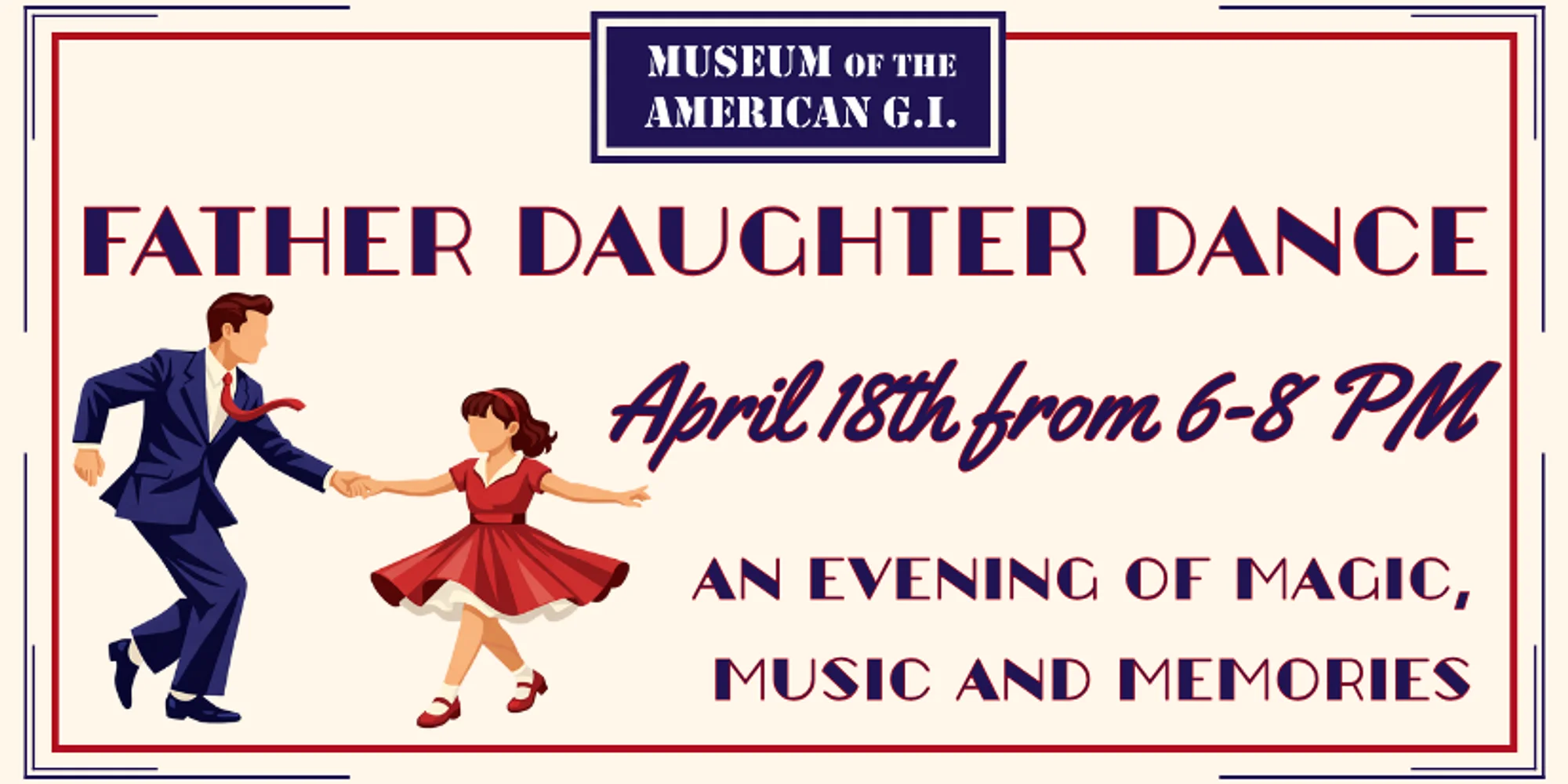 Experience the charm and excitement of a 1940s USO dance at our Father-Daughter Dance on April 18th from 6:00 to 8:00 PM. Grab your dancing shoes and get ready to swing the night away. This immersive evening will feature classic tunes, tasty food, engaging activities, and lots of dancing. It’s the perfect opportunity for fathers and daughters to dress up and enjoy a one-of-a-kind evening inspired by the 1940s, all while surrounded by artifacts from the era. Come celebrate history, family, and unforgettable moments together. Be sure to purchase your tickets in advance—door availability will be extremely limited.