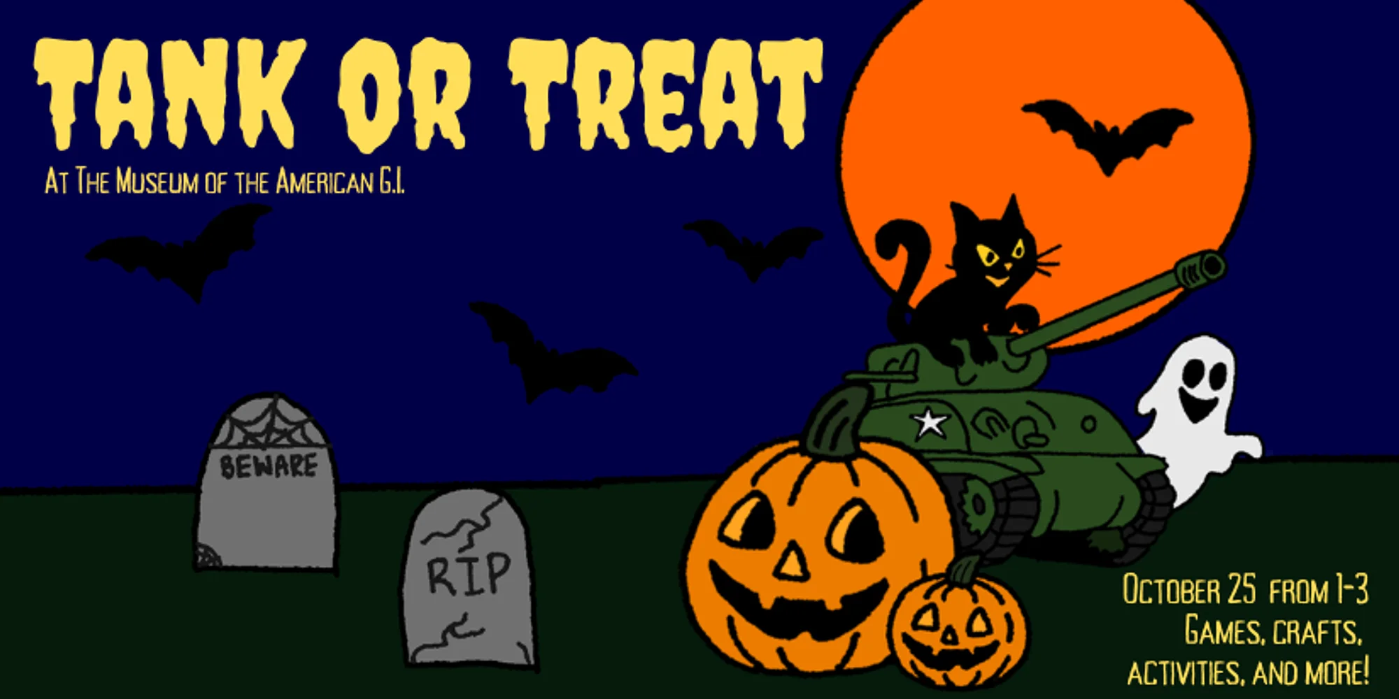 🎃 Tank or Treat at the Museum of the American G.I. 🎃 Looking for family-friendly Halloween fun? Join us at the Museum of the American G.I. on Sunday, October 25th, from 1:00–3:00 PM for an afternoon packed with spook-tacular games, crafts, and activities! Kids can test their skills at pumpkin chuckin’ and pumpkin bowling, decode hidden messages using a Halloween spy decoder, play a game of spooky cornhole, or brave the mystery of the eyeball surprise. Create your own Halloween keepsakes at the make-a-mask station and slimy Halloween table, then treat your sweet tooth with marshmallow ghosts. Of course, the fun doesn’t stop there—explore the museum, enjoy the festive atmosphere, and snap some photos of your costumed crew with real WWII tanks and vehicles as the backdrop. 👻 Special Treat: Kids 12 and under who come in costume get in free! Bring the whole family and celebrate Halloween with history, fun, and a few frightfully good surprises!