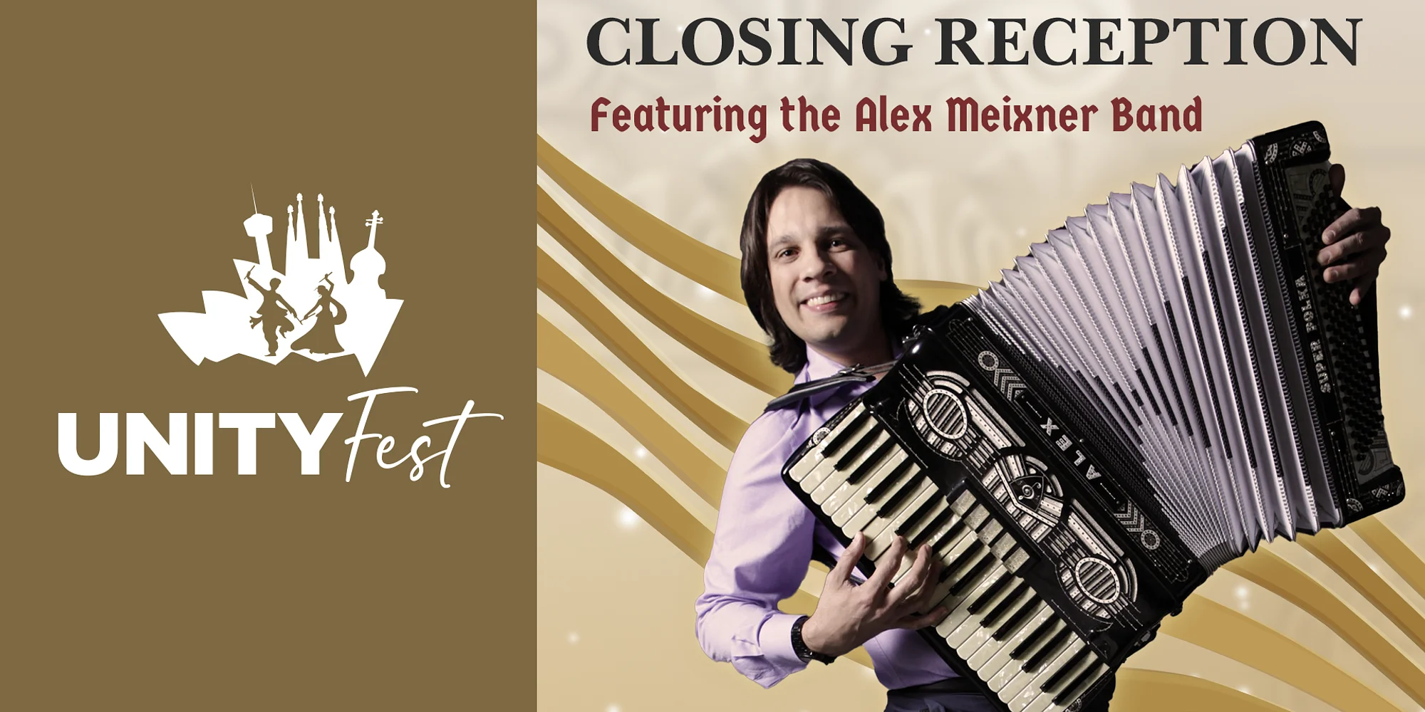 Raise a glass to the close of UNITYFest 2026 at an elegant reception in downtown San Antonio. Hosted at the historic Gunter Hotel, the evening reflects the building’s German roots, shaped in 1886 when German hoteliers Ludwig Mahncke and Lesher A. Trexler took over the property. That heritage comes alive through festive German-style music by the Alex Meixner Band, creating a refined yet welcoming celebration to toast the festival’s joyful finale. Food & Drink: Wine & Hors d’oeuvres Check-In begins at 6:30 PM. Ticket Pricing Single Ticket – $75 Multiple Tickets – $60 each ($15 value per ticket) At the Door – $90 Location & Parking The Gunter Hotel, 311 North Saint Mary’s Street, San Antonio, TX 78205 Valet at The Gunter Hotel – $10 St. Mary’s Garage, 205 E Travis St, San Antonio, TX (1 min walk) – $15 event rate Houston Street Garage, 111 College St, San Antonio, TX 78205 (2 min walk) – $15 event rate City Tower Parking Garage, 117 W Commerce St, San Antonio, TX 78205 (7 min walk) – $15 event rate FEATURED PERFORMING ARTIST Alex Meixner is a nationally acclaimed and Grammy-nominated musician, performer, bandleader, and educator dedicated to the vibrant world of polka music. With a foundation in classical, jazz, and ethnic music, Alex has effortlessly blended his versatile playing styles into pop, funk, jazz, and polka. As an ambassador for polka, he has sparked renewed interest nationwide, leading to sold-out shows and growing cultural appreciation. For Alex, it’s not just about energetic performances; it’s about providing positive experiences that unite communities to celebrate history, culture, and good times. Leading the Alex Meixner Band, Alex performs around 180 shows annually, captivating audiences at intimate venues and major festivals alike. The band is a regular headliner at events like Wurstfest in Texas, German Fest in Milwaukee, and Musikfest in Pennsylvania. As a soloist, Alex showcases his talent in jazz, classical, and polka genres, performing with university ensembles and at festivals worldwide. EVENT SPONSOR EVENT PARTNER Tickets Tickets are required to enter the event. Tickets are available through each event on our event calendar or on Eventbrite. Any questions regarding ticketing should be sent to the organizer Musical Bridges Around the World, not the venue. Check-in To help our staff, please have your ticket ready when you get there. Staff and volunteers will be ready to scan the QR code located on your ticket (print, email, or app). Door Opening Door opening time for this event is 30 minutes before the listed event time. Health & Safety Statement Musical Bridges Around the World will follow the most up-to-date safety guidelines for fine arts performance halls per the State of Texas, as well as any other measures necessary for the ensured safety of its attendees. It is within MBAW and the venue’s right and discretion as private entities to enact these safety protocols for its attendees. Lost Ticket/R...
