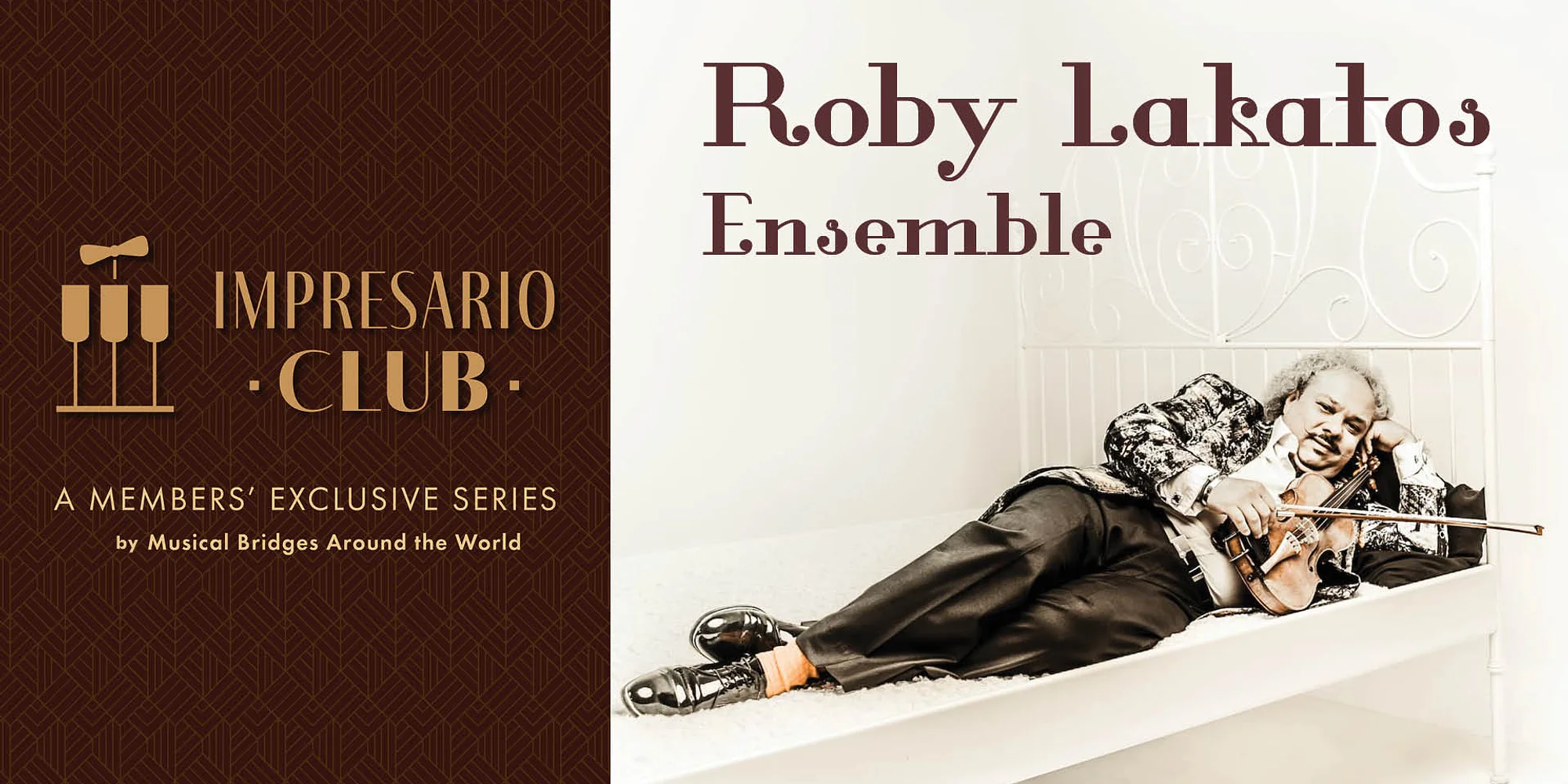 Interested in this event and not a member? Click here to learn more Virtuoso violinist Roby Lakatos and his ensemble, featuring piano, double bass, and cimbalom bring a breathtaking blend of Gypsy jazz and classical precision. ABOUT THE ARTISTS: Roby Lakatos is a musical phenomenon – a virtuoso violinist who effortlessly bridges classical, jazz, and Hungarian folk traditions to create a sound entirely his own. More than just a performer, he’s a musical alchemist, combining breathtaking technical mastery with soulful improvisation and compositional brilliance. Leading his acclaimed ensemble, Lakatos gathers some of Europe’s finest musicians: ❖ Vilmos Csikos (double bass) brings deep musical roots, having grown up immersed in jazz, classical and Romani traditions ❖ Lubomír Gaspar (cimbalom) adds his extraordinary command of both folk idioms and classical repertoire ❖ Robert Szakcsi Lakatos (piano), an award-winning jazz-classical pianist, contributes his formidable artistry Whether performing intimate club dates or commanding concert hall stages, Lakatos and his ensemble create electrifying musical experiences. Their performances are journeys through musical landscapes – one moment delivering heart-wrenching folk melodies, the next launching into dazzling improvisations, always with impeccable ensemble precision. Beyond his performing career, Lakatos has collaborated with some of the world’s greatest musicians while maintaining his deep connection to Hungarian musical traditions. His unique artistry continues to captivate audiences worldwide, earning him recognition as one of the most original and compelling violinists of our time. Event Sponsored by Vernon Haney & Samantha Price Fischer Artist Sponsored By Is this concert free? No, this concert is only open to paying members. To learn more about MBAW’s membership and join, click here. What is the parking situation? Parking is dependent upon each venue and will be communicated directly to members prior to the event. Can I see this artist elsewhere? Yes. This artist is available for another membership series and a free public concert. Please return to the event calendar to see these other events. Can I take pictures or video at the event? Please no flash photography during artist(s) performance. We would love for you to capture and share your experience, but we do ask that you be conscientious of others and the artists during their performance so as not to disrupt the event. Do you have other questions about this event or membership that require direct support? Contact us