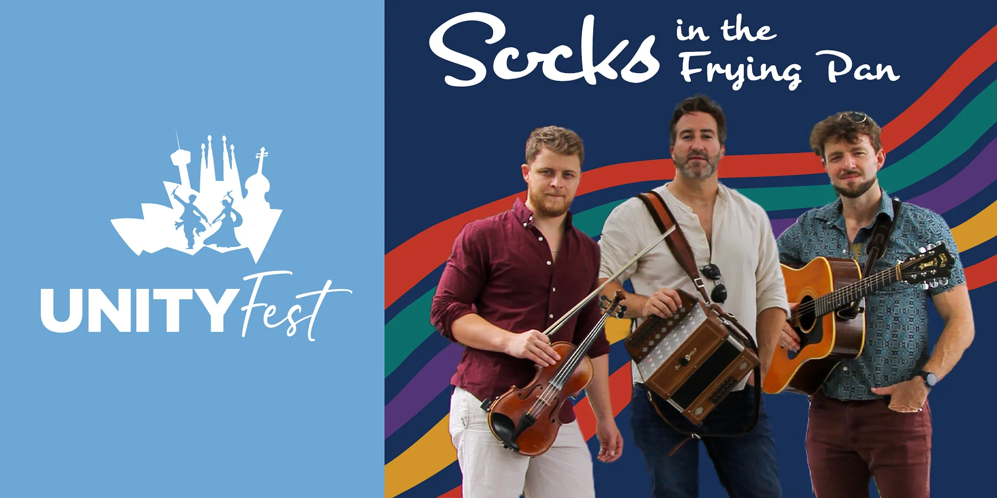 Get ready for an exhilarating afternoon with Socks in the Frying Pan, the multi-award-winning trio from County Clare, Ireland. Blending dazzling musicianship, tight harmonies, and playful on-stage banter, they’ve become one of the most beloved acts in Irish traditional music. Having toured across the globe and earned honors including “Live Band of the Year” from the Celtic Music Awards, Socks brings an infectious energy that turns every concert into a celebration. Doors open at 3 PM. This event is part of the 2026 UNITYFest music festival. ABOUT THE ARTISTS: “Live Band of the Year 2020” – Celtic Music Awards “Live Album of the Year 2020” – Celtic Music Awards “Celtic Top 20 of 2023” – Celtic Music Podcast Awards Socks in the Frying Pan, a multi-award-winning trio from Ennis, County Clare, Ireland—the mecca of Irish traditional music—was formed in 2014. Forged together by a fire of pure joy and passion for their art, the band comprises Shane Hayes on vocals and accordion, Calum Bell on vocals and violin, and David McKindley-Ward on vocals and guitar. Their ‘Socks Sound’ combines virtuosic musicianship with a burning passion for music and tradition, pitch-perfect harmonies, and a big splash of quick wit and banter. Their electrifying performances and on-stage charm have established them as the kingpins in the Irish Traditional Music scene today. They have toured extensively, capturing hearts in 46 US states, dozens of countries, and every continent, showcasing at renowned festivals such as the Walnut Valley Festival in Kansas, Electric Picnic in Ireland, Tønder Festival in Denmark, and the world-famous New Orleans Jazz Festival. To date, Socks in the Frying Pan have released three studio albums, each adding to their list of accolades including ‘Best New Band’, ‘Best Live Band’, ‘Album of the Year’, and ‘Best Live Performance of the Year’. Their latest release, Raw & Ríl, recorded live at Glór Theatre, was immediately awarded ‘Best Live Album’. https://socksinthefryingpan.com/ EVENT SPONSOR EVENT PARTNER Tickets Tickets are required to enter the concert, but they are free! Seating is first-come-first-served. Tickets are available through each event on our event calendar or on Eventbrite. Any questions regarding ticketing should be sent to the organizer Musical Bridges Around the World, not the venue. Check-in To help our staff and volunteers, please have your ticket ready when you get there. Staff and volunteers will be ready to scan the QR code located on your ticket (print, email, or app). Door Opening Door opening time for this event listed above. For most UNITYFest events, doors open 1 hour before the concert begins. Health & Safety Statement Musical Bridges Around the World will follow the most up-to-date safety guidelines for fine arts performance halls per the State of Texas, as well as any other measures necessary for the ensured safety of its attendees. It is within MBAW and the venue’s right and discretion as private ent...