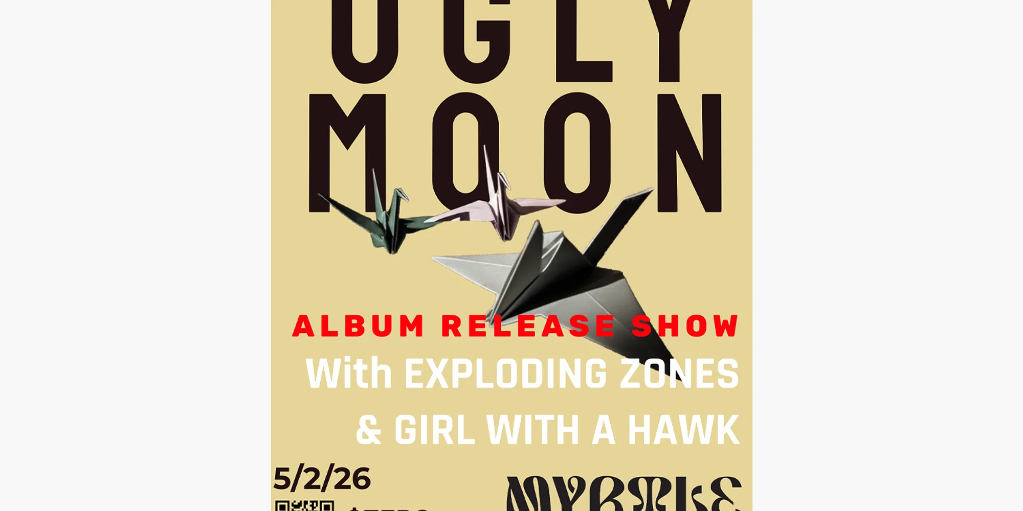 Ugly Moon is the music of brothers Mike & Matt Mowry, bassist Johnny McMahon, and drummer Ian McMillan. Known for delivering heavy, guitar-driven folk and indie rock with a raw, emotional core. Their sound is both retrospective and poignant, weaving between tender, contemplative melodies and aggressive, unfiltered intensity. Ugly Moon crafts songs that feel deeply personal yet universally resonant. Exploding Zones formed in 2022 as a trio up until recently adding a second guitar. Fuzzy basslines and driving drums carry the washes of guitar throughout their live set as well as their two eps. Girl with a Hawk is an indie rock band whose sound shifts effortlessly between shimmering indie pop, rootsy folk-country textures, and punchy garage-rock energy. Their dynamic style balances loose, expressive performances with tightly crafted songwriting, creating sets that feel both spontaneous and polished. While their recorded singles impress, Girl with a Hawk truly shines onstage, delivering electrifying live shows that transform their songs into something raw, immediate, and unforgettable.