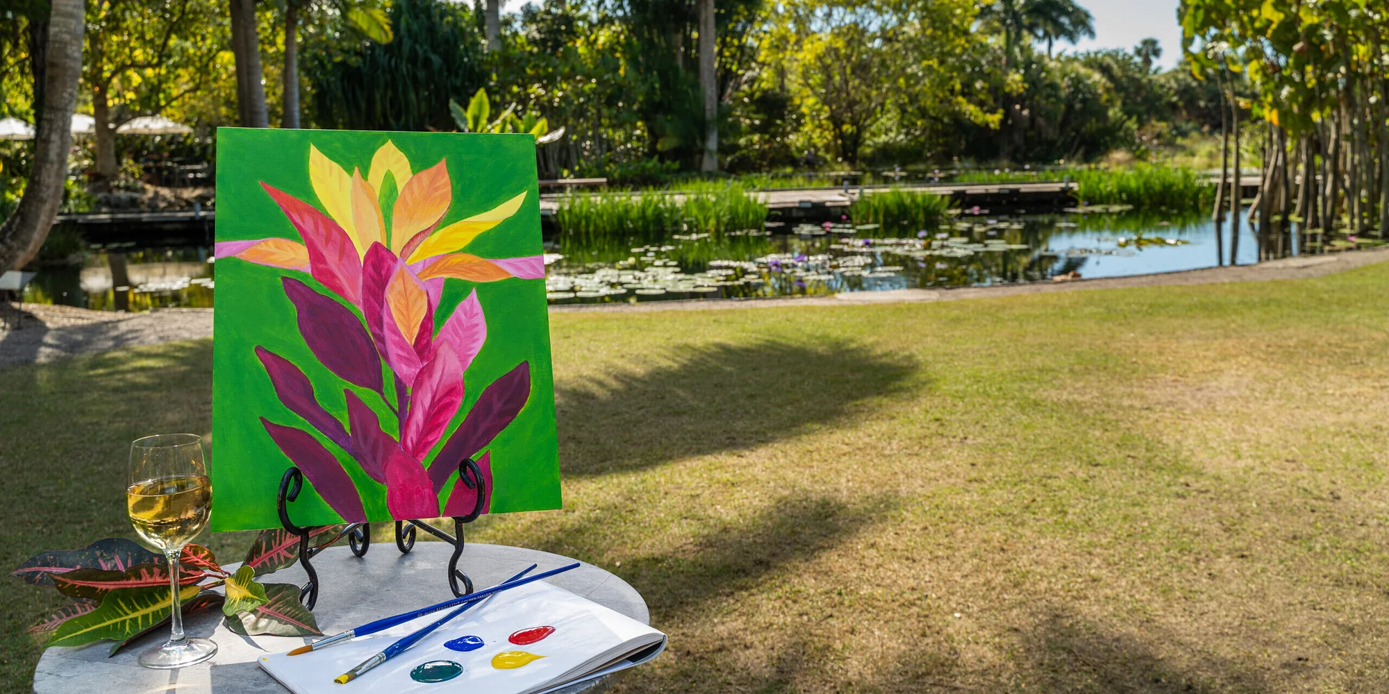 @ Let nature inspire you during a one-hour Friday After 5 paint & sip workshop! Enjoy a complimentary beer or glass of wine while painting a colorful croton for a relaxing evening in the Garden. Follow along with a Garden educator while you learn a few fun facts about the plants on your canvas. This event takes place during the Naples Flower Show & Garden Market. $40 Members / $50 Non-Members; includes Garden admission Sold Out Every Garden admission ticket, workshop, or membership purchase helps to support Naples Botanical Garden’s conservation efforts.
