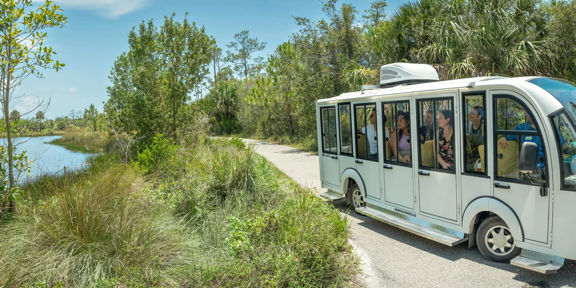 @ Explore the Garden as you never have before: on wheels! Journey through the Garden grounds on a guided cart tour, learn the history of Naples Botanical Garden, get an exclusive behind-the-scenes look at our Evenstad Horticulture Campus, and enjoy views of the Garden’s 90 acres of conserved natural areas. This 45-minute staff-led tour takes place on a quiet electric cart and requires an additional fee. This tour is offered twice-daily at 10:30am & 12:30pm. Space is limited, reserve your tour today! Pre-registration available on the website, day-of sign-ups available at Ticketing. Fee: $25 Member / $35 Non-Member. Garden admission not included. Register for a Garden Grounds Cart Tour Now To reserve your spot on a Garden Grounds Cart Tour, purchase your Garden ticket and scroll down to select your preferred tour option. Electric Cart Tour Accessibility & Guidelines: Guests must be able to step up into and sit in the electric cart independently; no car seats or children on laps allowed. Carts are not wheelchair accessible. Guests agree to keep all limbs inside the cart, stay seated for the duration of the tour, and use the provided seat belts during the tour. Garden Grounds Cart Tours are subject to availability, open-air Garden carts may be used in place of Tram. Every Garden admission ticket or membership purchase helps to support Naples Botanical Garden’s conservation efforts.
