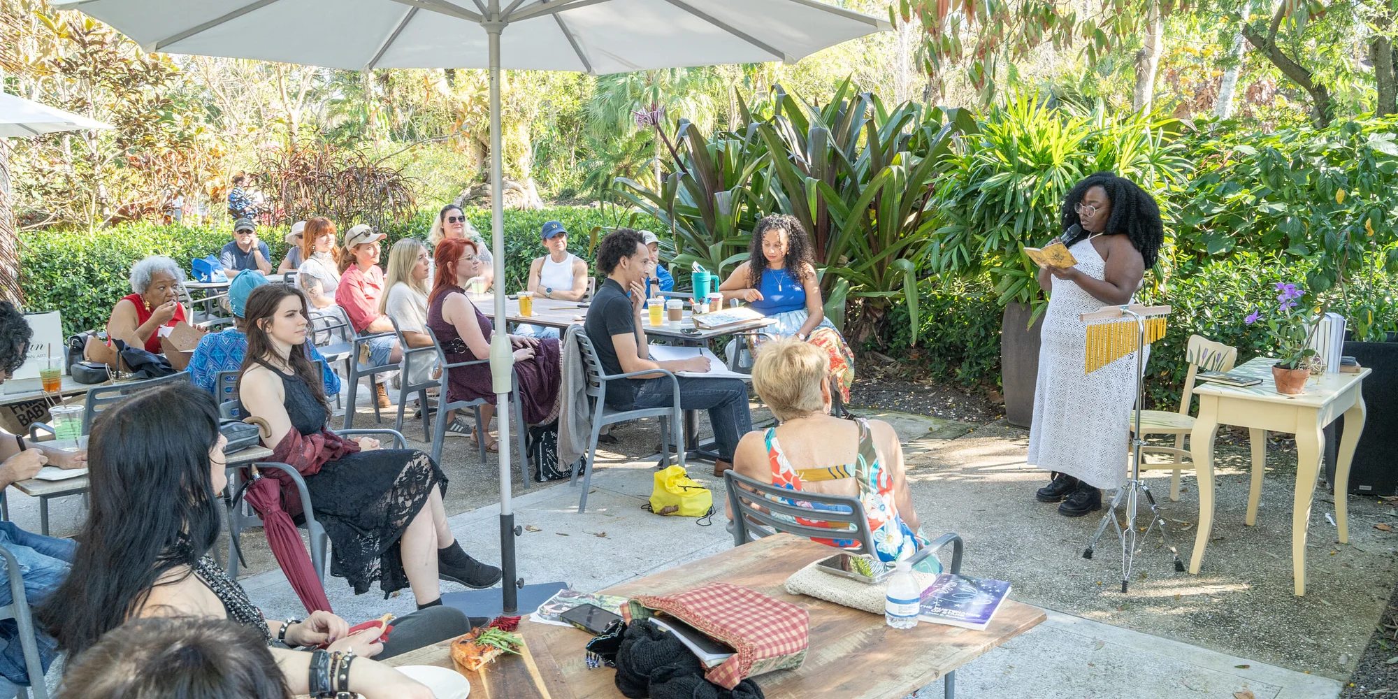 @ Join us for Plant Poetry with Natalie Guerra, an afternoon of lyrical expression inspired by the beauty of plants and the shared connection they foster. Hosted in Lu’s Courtyard adjacent to Fogg Café, this event celebrates creativity, community, and open dialogue. Together, poets and appreciators explore the poetry of nature—its beauty, form, and function—while cultivating a safe, welcoming space for all. Let your voice bloom and connect with fellow artists within the Garden’s verdant embrace. Plant Poetry: Open Mic, 2 – 4pm February 15 March 15 April 19 May 10 This event is open to the public and is included with Garden admission; free for Members. All are welcome to listen; registration is not required to attend the event as a listener. Participants who register to read or recite in advance will receive complimentary Garden admission. Register to Read or Recite Purchase Garden Admission Participant capacity is limited to 20; please register in advance. Participants interested in reading or reciting should register prior to the the event using the registration link above. Only one participant registration is allotted per order. Participants who register after 12pm the day of the event will need to check in with Natalie Guerra upon arrival. About Natalie Guerra Natalie Guerra is a poet from Fort Myers, Florida, and a first-generation American born to Salvadoran parents. She views life through a lens of opportunity and optimism. Although passionate about writing, she studied biology at the University of South Florida-St. Petersburg and also spent time abroad studying French and Spanish. After working in emergency medicine and pharmacology, Guerra rediscovered her creative voice through poetry. She is the author of over 200 poems focused on G.R.O.W.T.H., an acronym she uses to describe grieving, resting, and writing to heal. Beyond her own work, Guerra actively supports the local literary community by hosting open mics, writer’s circles, and other events for poets and storytellers. She has built a network of over 100 writers across Southwest Florida and continues to create safe spaces for connection and self-expression through writing.