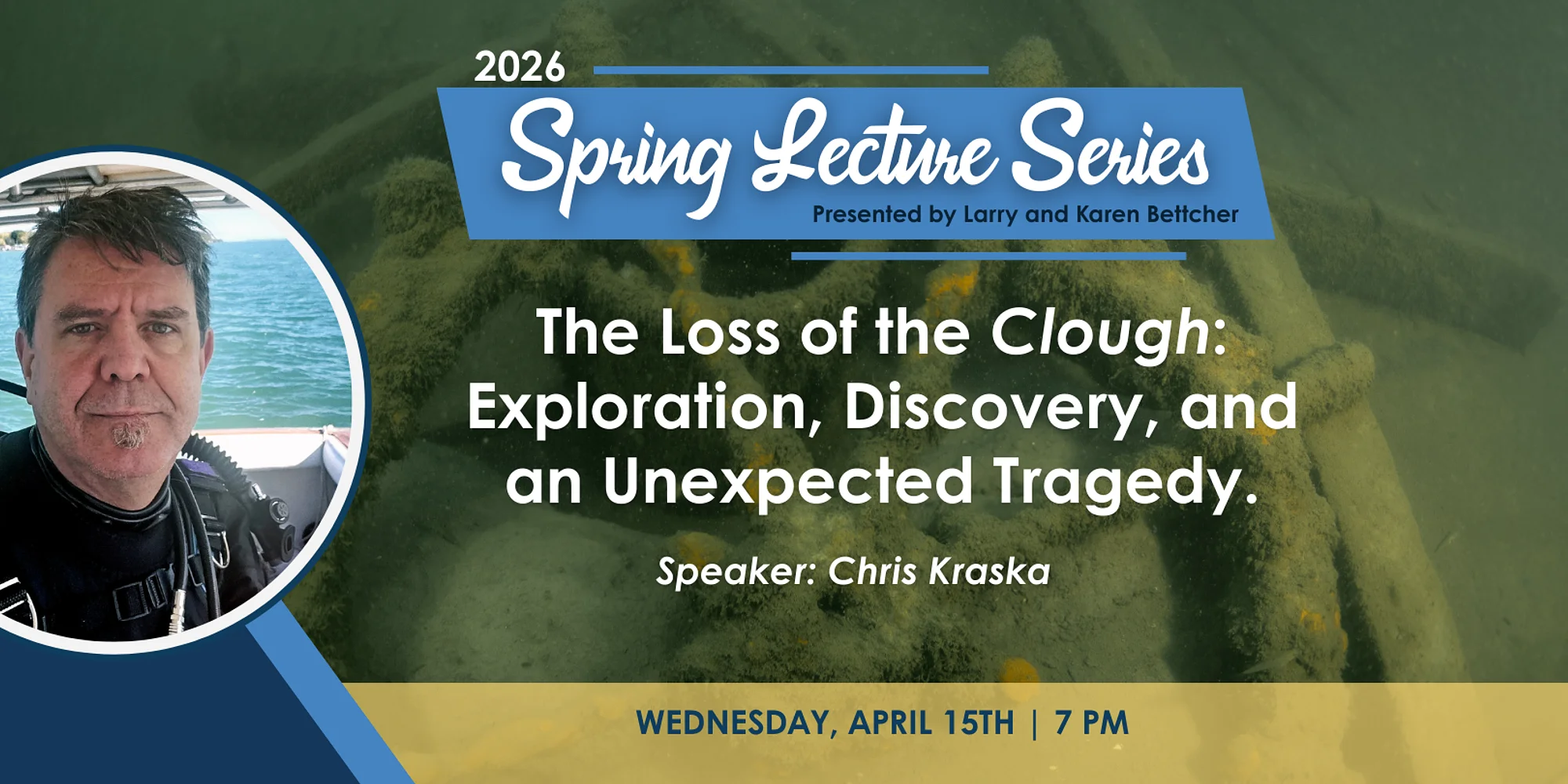 Join us for our 2026 Spring Lecture Series, presented by Larry and Karen Bettcher. Offered as a hybrid event, participants can choose when registering to take part in-person at the museum or online via Zoom. The Loss of the Clough: Exploration, Discovery, and an Unexpected Tragedy 📅 Wednesday, April 15, 2026 🕖 7:00 PM 📍 In person at the National Museum of the Great Lakes or online via Zoom 💵 Free | Registration required About the Lecture In September 1868, the barkentine Clough departed Lorain, Ohio, heavily laden with tens of tons of grindstones and massive sandstone blocks, destined for hungry markets across the Great Lakes. A short time later, she became a ghostly testament to the unforgiving nature of 19th-century commerce, sinking in a fierce gale with the loss of seven of the eight souls onboard. Over 150 years later the wreck site was found, but its discovery led to one final tragedy: the loss of the first person to dive the wreck, maritime archaeologist David VanZandt. This presentation will examine the regional trade in stone, the often dangerous world of Great Lakes shipping in the second half of the 19th century, the history of the vessel from its building to sinking a mere 14 months later, as well as techniques for detecting and identifying shipwrecks. This lecture is free, but registration is required. Donations are always happily accepted. About the Speaker Chris Kraska is the son of an Irish mother and Polish Father who met and married in Scotland at the height of WWII while father was a seaman in the Polish Navy. Chris became involved in maritime archaeology in 2006 after attending the MAST (Maritime Archaeological Survey Team) workshop. He subsequently served as a board member and chairman of the board of MAST until 2018. Chris worked with CLUE (the Cleveland Underwater Explorers) for several years before joining the group as deputy director of archaeology in 2023. Chris is also active with the Shipwreck Expedition Association, which has located and identified ships off the coast of Africa and in the Mediterranean, including his father’s warship which sank after striking a mine in 1942. Most recently, he was elected President of the Ohio Archaeological Council. Chris is a member of the Explorers Club and a fellow of the Royal Geographical Society. He has degrees in international relations, education, and anthropology and lives in Twinsburg with his wife Laurie. He has taught public school in Cleveland for 25 years.