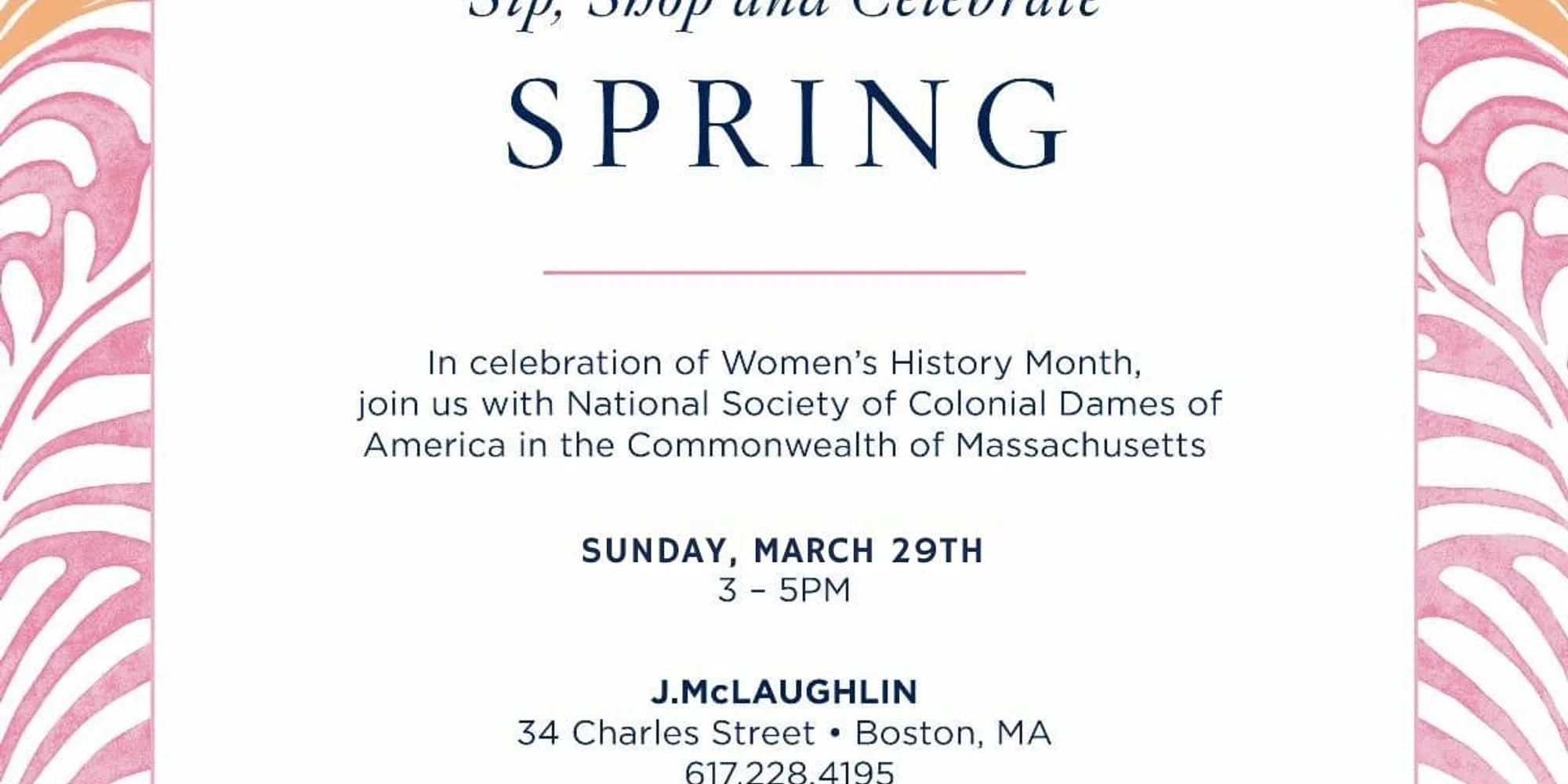 Bring your friends for an afternoon of shopping and refreshments at J. McLaughlin, Beacon Hill. This event starts right after the Spring Membership Tea! 10% of all sales during this event will all go directly to The National Society of The Colonial Dames of America in The Commonwealth of Massachusetts! For those unable to attend but would like to purchase something, please call in your order on Sunday, March 29th to the Charles Street store at 617-228-4195 and ask for the manager, Eileen. Thank you for supporting the Dames! https://www.jmclaughlin.com/