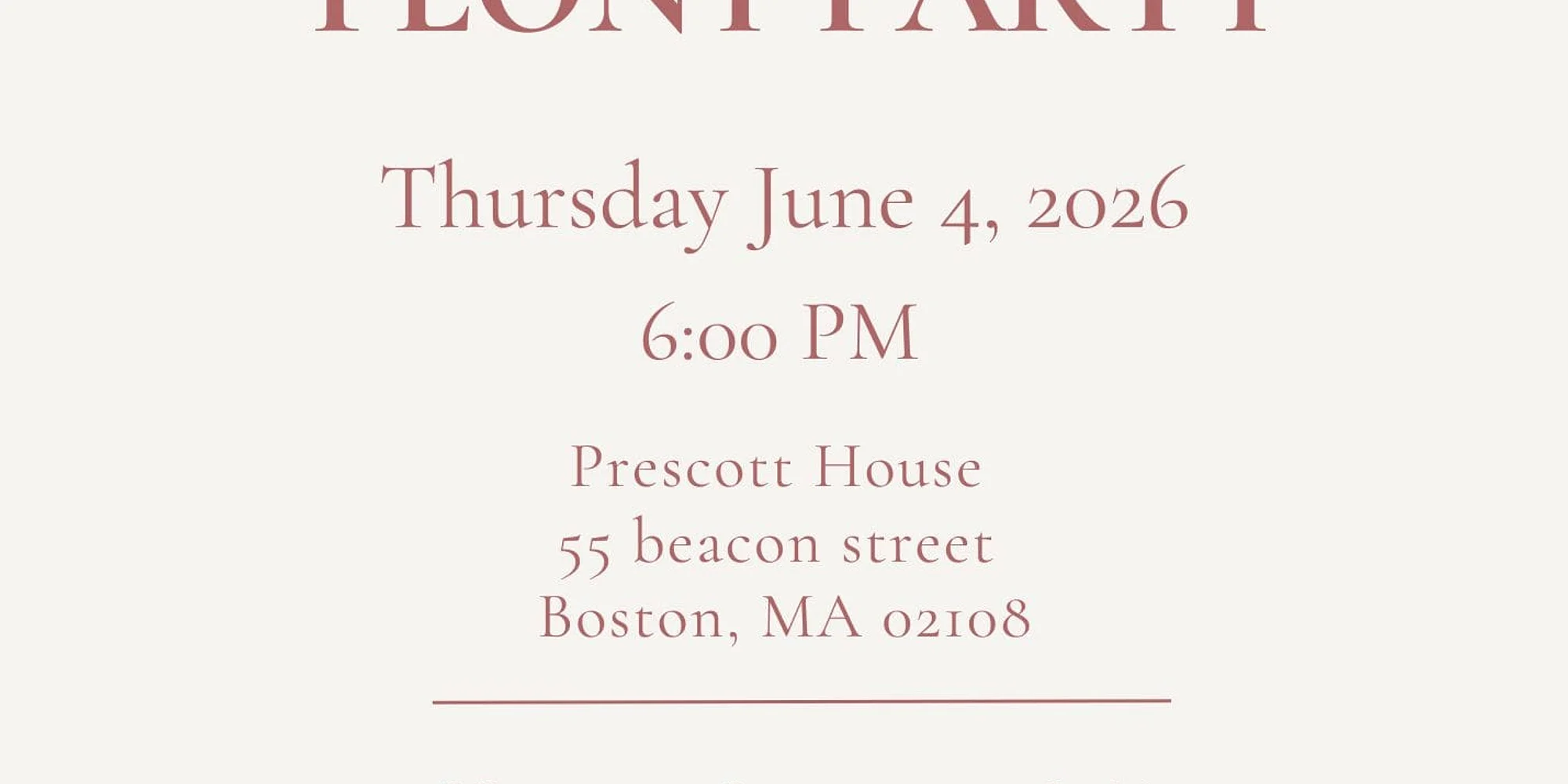 The Massachusetts Dames cordially invite you to the Peony Party. Members and Guests only. Join fellow Dames for an evening of celebration, cocktails, hors d’oeuvres, and Bo Winiker’s music provided through the generosity of Tom Thaler. Remembering Grace Yeomans Thaler Grace was a generous and dedicated Dame who lost her battle with pancreatic cancer in 2013. The Peony Party sprouted from Grace’s love of peonies, and proceeds from the event support the Grace Yeomans Thaler Memorial Fund. The fund was established by Grace and her husband Tom to support the preservation of the Prescott House. Sponsorship Opportunities: $5,000 Reserves 4 tickets $2,000 Reserves 2 tickets $1,000 Reserves 1 ticket $500 $250 Recognition will be given to all sponsors in the Monthly Minnow & the night of the event.