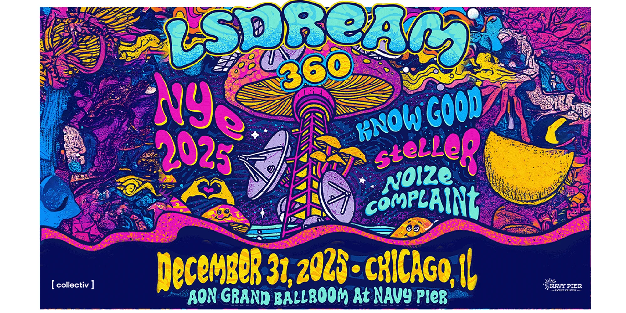Get ready for a transformative New Year’s Eve concert! Known for his cosmic blend of bass-heavy soundscapes and entrancing live performances, LSDREAM is set to guide fans into 2026 with a night of high-vibrational energy, psychedelic visuals, and soul-shaking frequencies. Supporting LSDREAM on the lineup are Know Good, Steller, and Noize Complaint, each bringing their unique artistry and sound to the stage. Together, they’ll create an electrifying experience that blurs music, art, and community. Don’t miss the chance to welcome 2026 with LSDREAM and friends at one of Chicago’s landmark venues. LSDREAM has partnered with PLUS1 so that $1 per ticket goes to supporting organizations working for equity, access, and dignity for all. www.plus1.org.