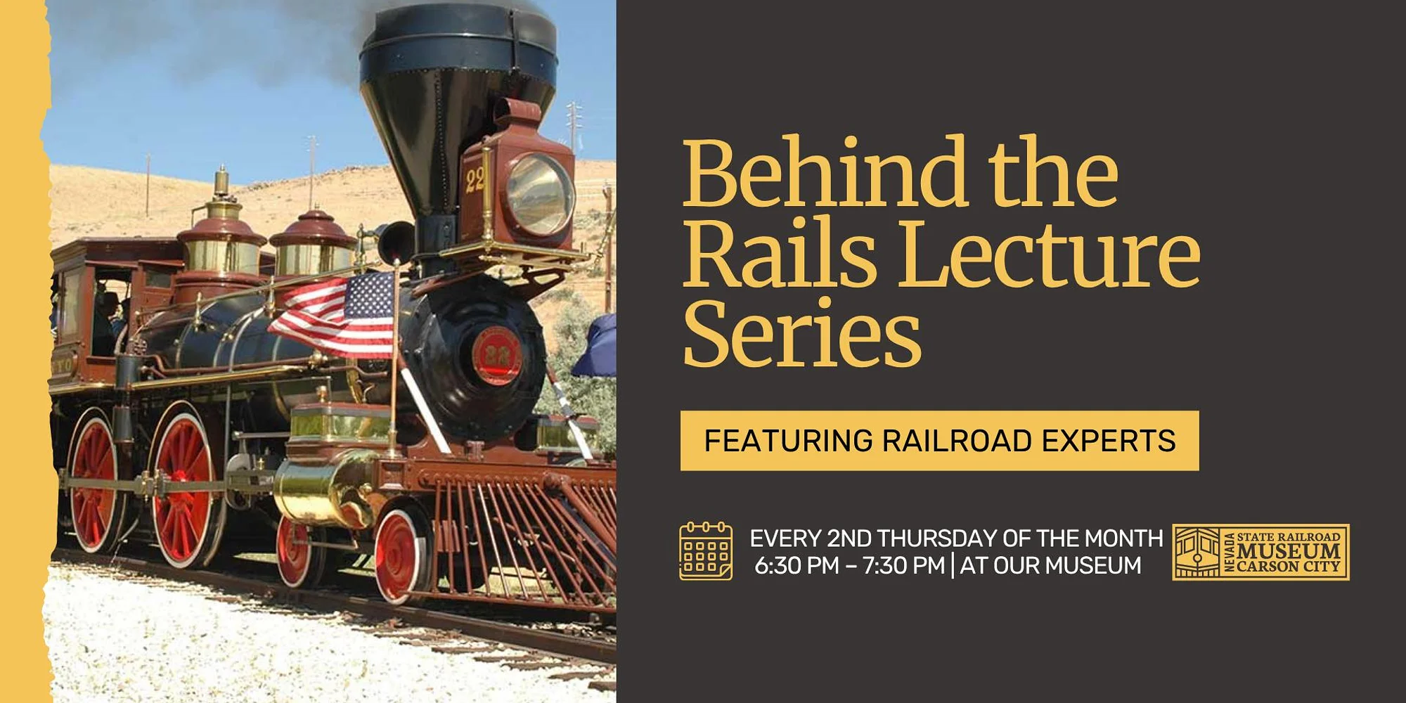 Join us every second Thursday of the month for our Behind the Rails Lecture Series featuring experts in all things railroad. Admission is $10 for adults, members and children under 17 are free. Behind the Rails