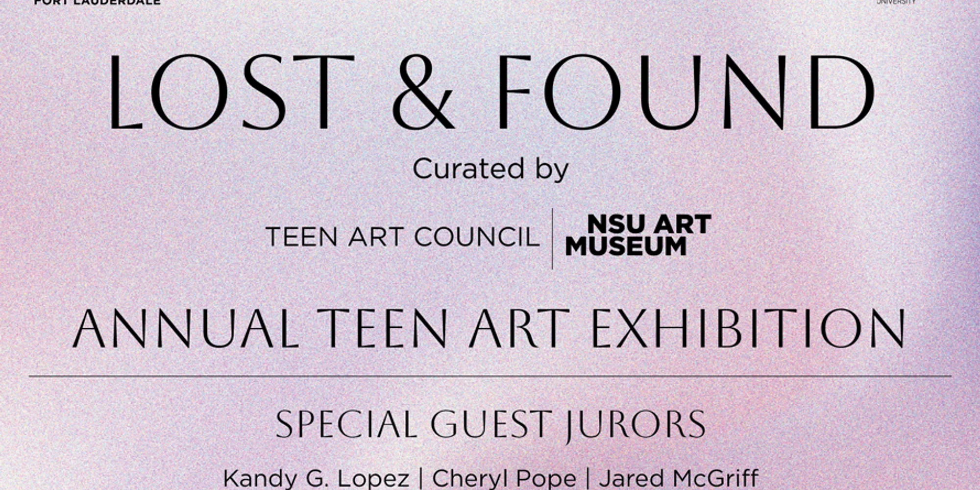 Please join us for the opening reception of Lost & Found, an exhibition showcasing artwork in all media by Broward County teens, curated by student members of the Teen Art Council at NSU Art Museum Fort Lauderdale. Bringing together an eclectic range of creative voices, the exhibition highlights the unique perspectives and lived experiences of teens across Broward County. Viewers are invited into a rich archive of teen imagination, where diverse works come together to offer glimpses into the worlds these young artists thoughtfully and skillfully create. The theme of Lost & Found encourages artists to explore an open-ended spectrum of ideas, memories, emotions, and experiences that may fade, transform, or resurface in unexpected ways. Rather than defining a single narrative, the exhibition leaves space for interpretation and discovery across all artistic mediums. This annual exhibition celebrates the energizing creativity of Broward County teens and invites audiences of all backgrounds to engage with work that is curious, reflective, and boldly expressive. It is both a platform for emerging artists and a welcoming space for art appreciators to connect with the creative spirit of the next generation. Whether through visual art, performance art, dance, writing, or music, Lost & Found is a testament to the resilience of creativity and a reminder that sometimes, the most profound discoveries are made when we least expect them. Join us as special guest jurors Kandy G. Lopez, Jared McGriff, and Cheryl Pope make their final decisions, with the awards be announced at 6 pm! Awards include “Award in Creativity”, “Impact Award”, and “Best in Show Award”. Don’t miss out on this highly anticipated night! Opening Reception at NSU Art Museum: Thursday, March 5, 2026, from 5 – 7 pm Please RSVP here Exhibition open from March 5 to March 15, 2026.