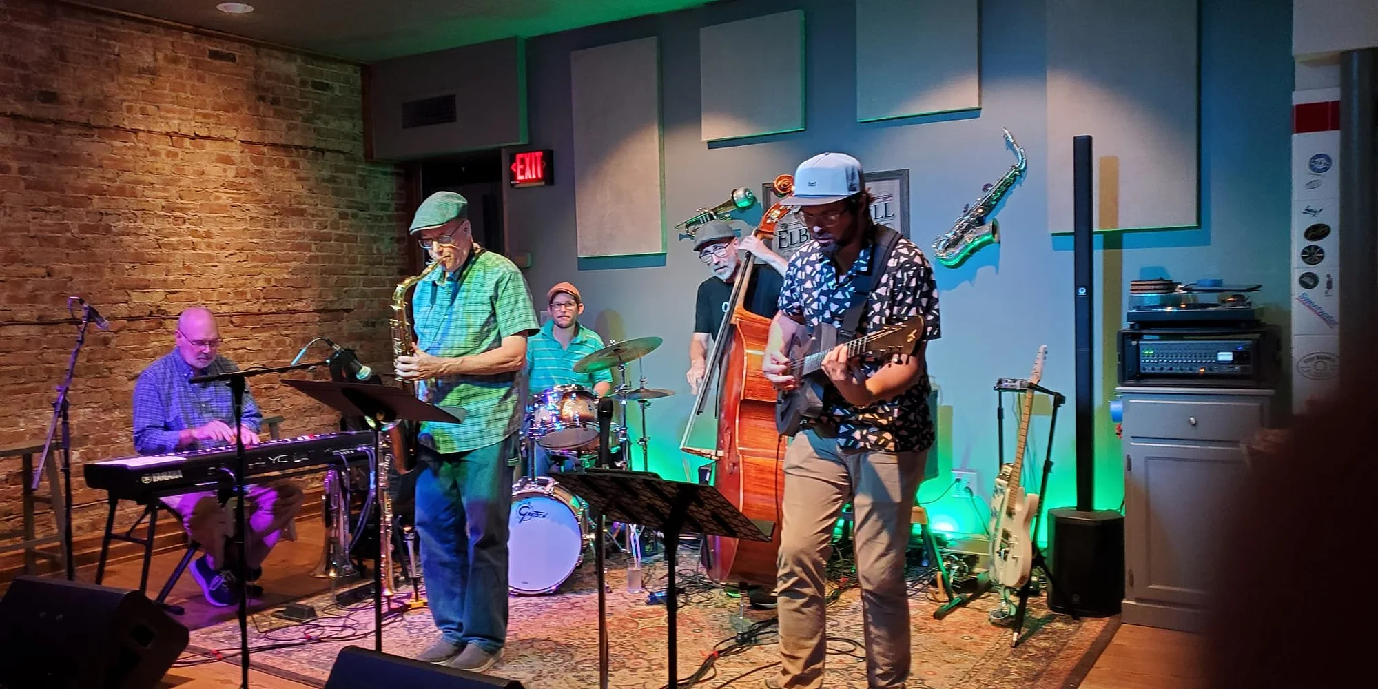 The Old Elburn Hall House Quintet (usually) plays every other week. Jazz/Bebop Standards, Modern Jazz, and usually some funky/fusion stuff towards the end! Randy Ream (sax) Tom Hartnett (keyboards) Joel Ream (guitar) Michael Barton (bass) Peter Mack (drums)