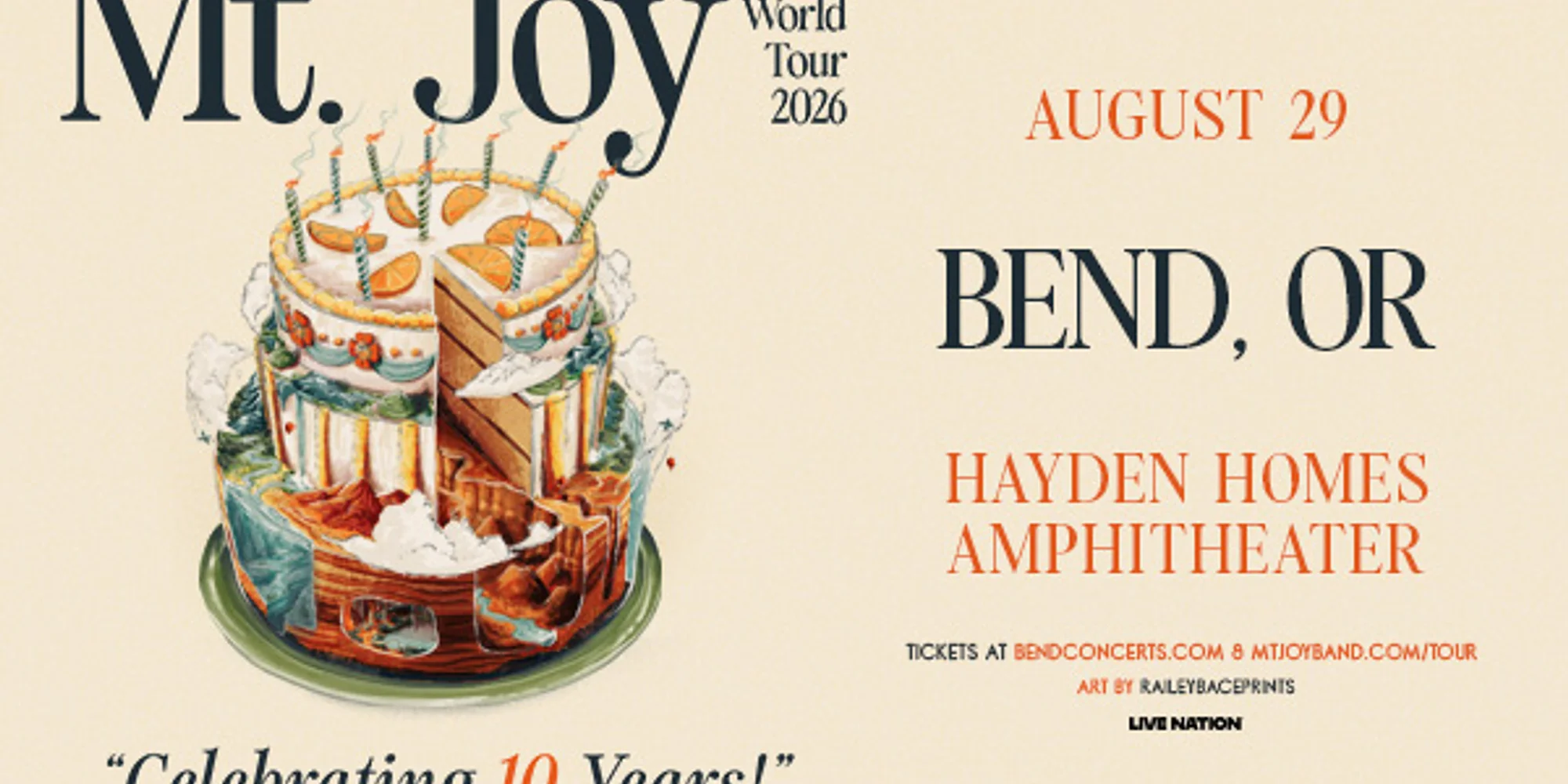 Mt. Joy Celebrating 10 years of Mt. Joy Saturday, Aug. 29 Doors open at 6 p.m. Show starts at 7:30 p.m. Tickets on sale now. Available online or in-person at the Ticket Mill in the Old Mill District. Chair rentals for General Admission tickets available while supplies last. If you think you’ll want a chair at the show, we recommend securing your rental at the time of ticket purchase. Note: chair set up location may be designated on show night. Since forming in 2016, Mt. Joy, the Philadelphia native indie-rock band — comprised of Matt Quinn (vocals, guitar), Sam Cooper (guitar), Jackie Miclau (keys, piano), Sotiris Eliopoulos (drums), and Michael Byrnes (bass) — has put in their 10,000 hours preparing for this very moment. After nearly a decade of touring and recording three critically acclaimed albums (2018’s “Mt. Joy,” 2020’s “Rearrange Us,” and 2022’s “Orange Blood”), the five-piece reached new heights in 2024, selling out New York’s Madison Square Garden, The Greek Theater in Los Angeles, Denver’s Red Rocks Amphitheater, and more. The band’s momentum stemmed from years of hard work cultivating an unforgettable stage presence and their laser focus on organic growth. In 2025, Mt. Joy continued their ascent with the release of their fourth EP, “Hope We Have Fun,” and their wildly successful North American tour of the same name. The Hope We Have Fun tour saw the band reach new milestones, with sold out shows at Boston’s TD Garden, Forest Hills Stadium in New York, a record breaking performance at Fiddler’s Green Amphitheatre in Denver, and festival stops at Governor’s Ball and Rhode Island’s Newport Folk Festival. For Quinn, the record speaks directly to the band’s long journey together. “We’ve all worked incredibly hard together and done ridiculous things in sickness and in health. You just kind of look up and you’re at Madison Square Garden with these people, and it makes you emotional — it feels like something you never could have dreamed. The album is a realization that we pushed ourselves into this crazy world, sometimes for better and sometimes for worse. It’s a lot about sticking together in relationships, living a crazy lifestyle and just kinda saying, ‘I hope we have fun.'” The album’s thirteen tracks explore the high, lows, and intimate moments of a life lived on the road, with Quinn’s soulful vocals floating over intricate, rootsy instrumentals. To date, Mt. Joy has garnered over one billion global streams and has sold more than half a million tickets, with the singles “Silver Lining,” “Jenny Jenkins,” “Lemon Tree,” “Strangers,” “Highway Queen,” and “She Wants to Go Dancing” all charting in the Top 5 on AAA radio. The band has earned critical acclaim from major media outlets including The New York Times, Rolling Stone, Billboard, NPR, and PEOPLE; they’ve also graced the stage at top festivals around the world, as well as on late-night TV shows including James Corden, Conan O’Brien, Stephen Colbert, and Jimmy Kimmel. EVENT ...
