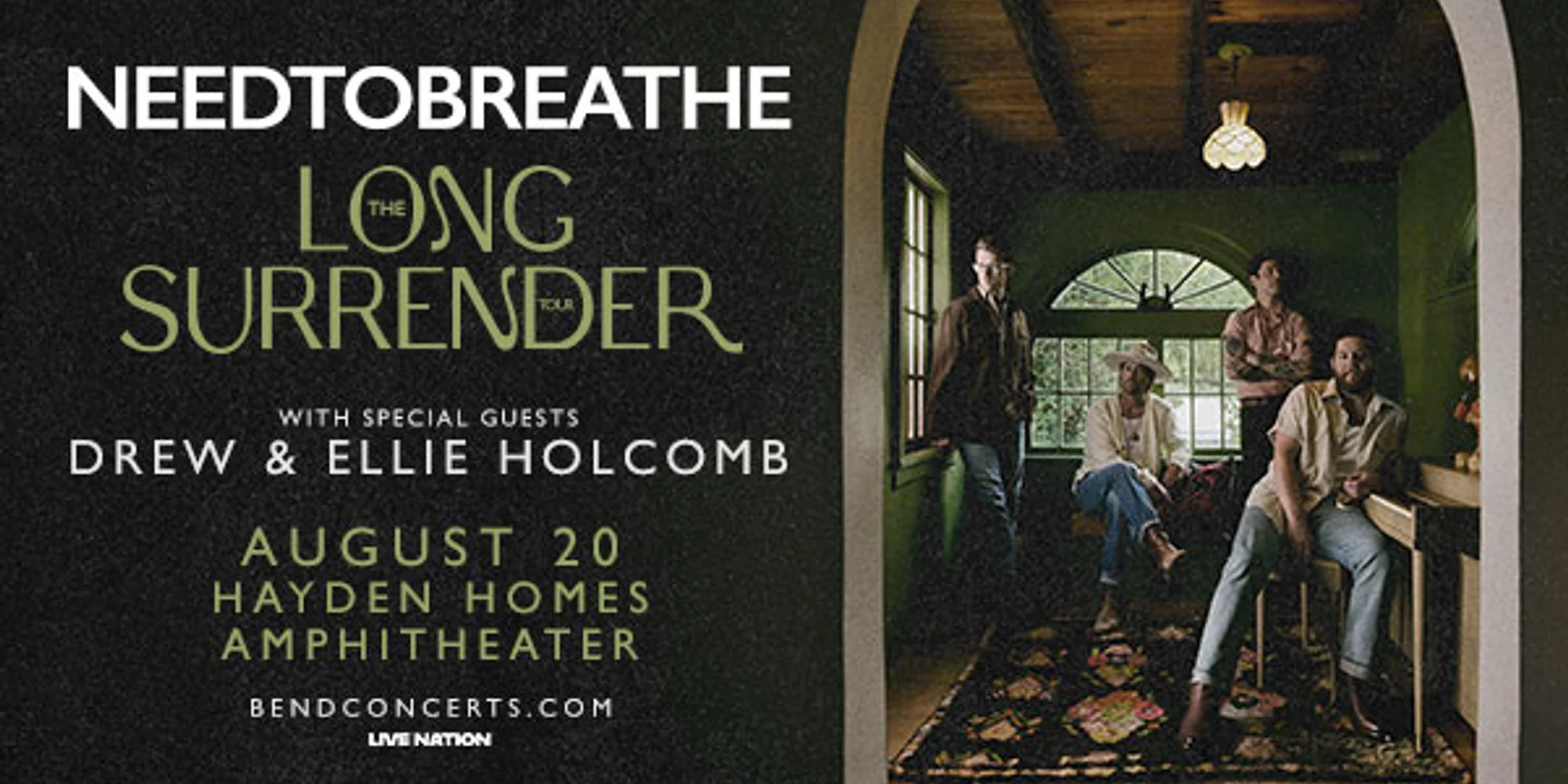 NEEDTOBREATHE Thursday, Aug. 20 Doors open at 5 p.m. Show starts at 6:30 p.m. Online-only venue presale starts Wednesday, March 18 at 10 a.m. If not already, sign up for Concert Alerts to receive presale code. General onsale starts Friday, March 20 at 10 a.m. online or in-person at the Ticket Mill in the Old Mill District. Chair rentals for General Admission tickets available while supplies last. If you think you’ll want a chair at the show, we recommend securing your rental at the time of ticket purchase. Note: chair set up location may be designated on show night. NEEDTOBREATHE is a multi-platinum, Grammy-nominated band known for their distinctive blend of Americana, alt-rock, and spiritual depth. The South Carolina–bred group, Bear Rinehart, Josh Lovelace, Tyler Burkum, and Randall Harris, enters a new creative chapter with “The Long Surrender,” their tenth studio album and first release for MCA. Produced by nine-time Grammy-winner Dave Cobb, “The Long Surrender” captures the band at their most vulnerable and instinctive, recorded largely live and driven by Rinehart’s deeply personal songwriting. Led by the early standout “Momma Loves Me” featuring The Red Clay Strays, the album reflects themes of faith, redemption, and renewed clarity, showcasing a band confident enough to strip everything back and let the songs speak for themselves. “This album really clarified that, as an artist, I’ve got to put my convictions in front of anything else,” says Rinehart. “I poured myself into it without trying to shape it for anyone or anything, and that’s what we’re going to keep doing from here on out. It’s definitely a better indicator of where we’re headed than where we’ve ever been, and in a lot of ways it feels it’s our very first record.” EVENT DETAILS + TICKETS