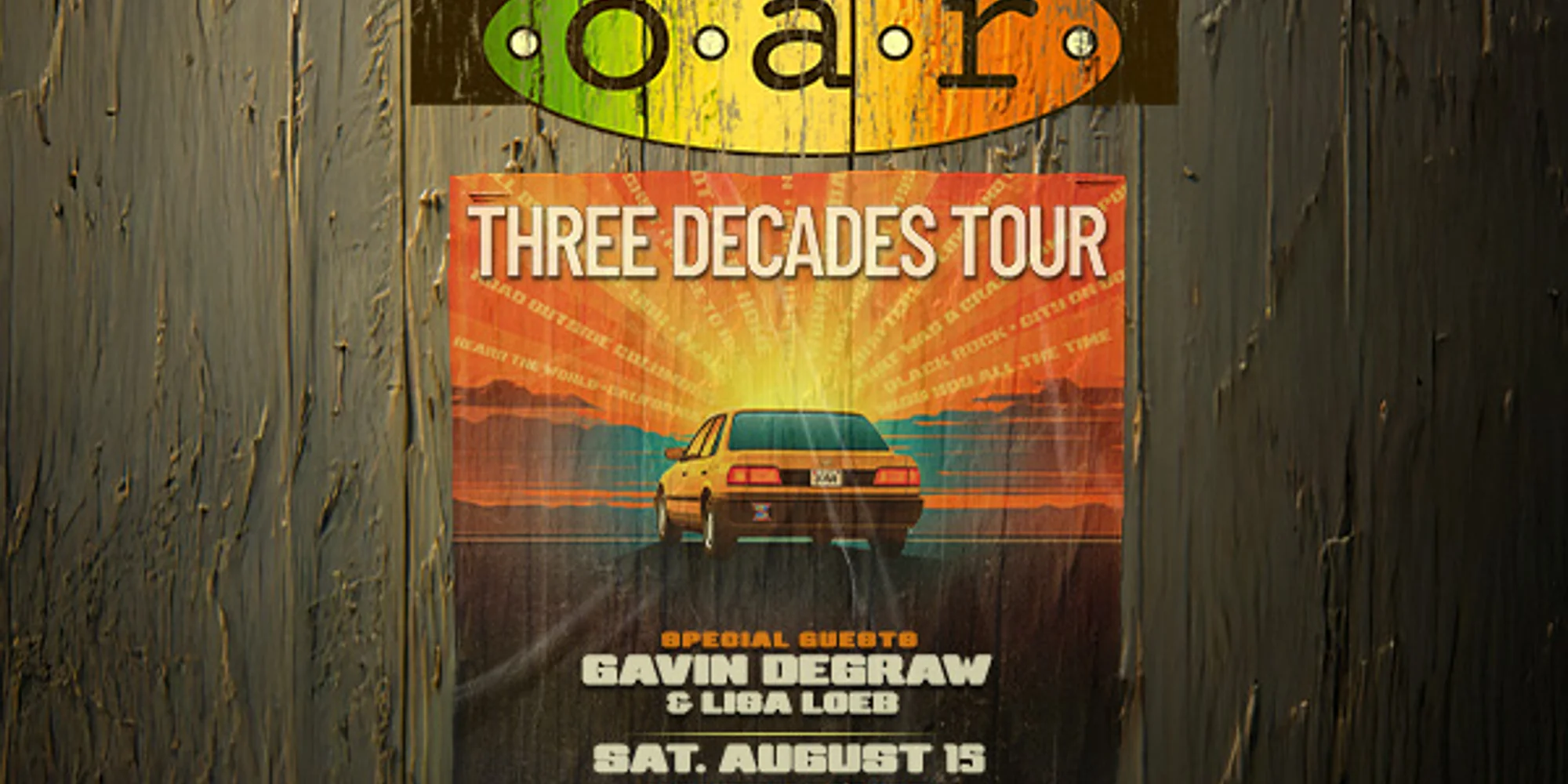 O.A.R. With special guests Gavin DeGraw and Lisa Loeb Saturday, Aug. 15 Doors open at 4 p.m. Show starts at 5:30 p.m. Tickets on sale now. Available online or in-person at the Ticket Mill in the Old Mill District. Chair rentals for General Admission tickets available while supplies last. If you think you’ll want a chair at the show, we recommend securing your rental at the time of ticket purchase. Note: chair set up location may be designated on show night. Three decades ago the members of O.A.R. (Of A Revolution), lead vocalist/guitarist Marc Roberge, drummer Chris Culos, guitarist Richard On, bassist Benj Gershman, and saxophonist/guitarist Jerry DePizzo, started something that would change the lives of music lovers forever. Theirs is a joyfully communal spirit that’s transcendent for both the artists and audience alike. An experience that has brought with it the ability to sell out legendary venues like Madison Square Garden on more than one occasion. For the band, the work of endlessly uplifting their followers is equal parts responsibility and immense privilege, a dynamic Marc Roberge considers essential to their longevity. “Apart from communicating, I think the number one thing you need to keep a band going is to really appreciate and find joy in what you do, and that’s absolutely the case with us. We don’t ever take any of it for granted.” This August O.A.R. returns to celebrate three decades of sax-soaked jams, pop rock hooks and sing-along choruses that swell from a sway to full hands-in-the-air refrains. Think “Shattered (Turn the Car Around),” “Love and Memories,” “Hey Girl,” and a rousing “Crazy Game of Poker.” Special guest Gavin DeGraw brings his soulful, piano-driven pop infused with rich heartfelt fire, and the lovely Lisa Loeb adds her witty, crystal-clear folk-pop and charming warmth to harmonies that will feel both fresh and familiar. You may not realize it, but you’re about to share your next summer anthem with thousands of your new best friends. EVENT DETAILS + TICKETS