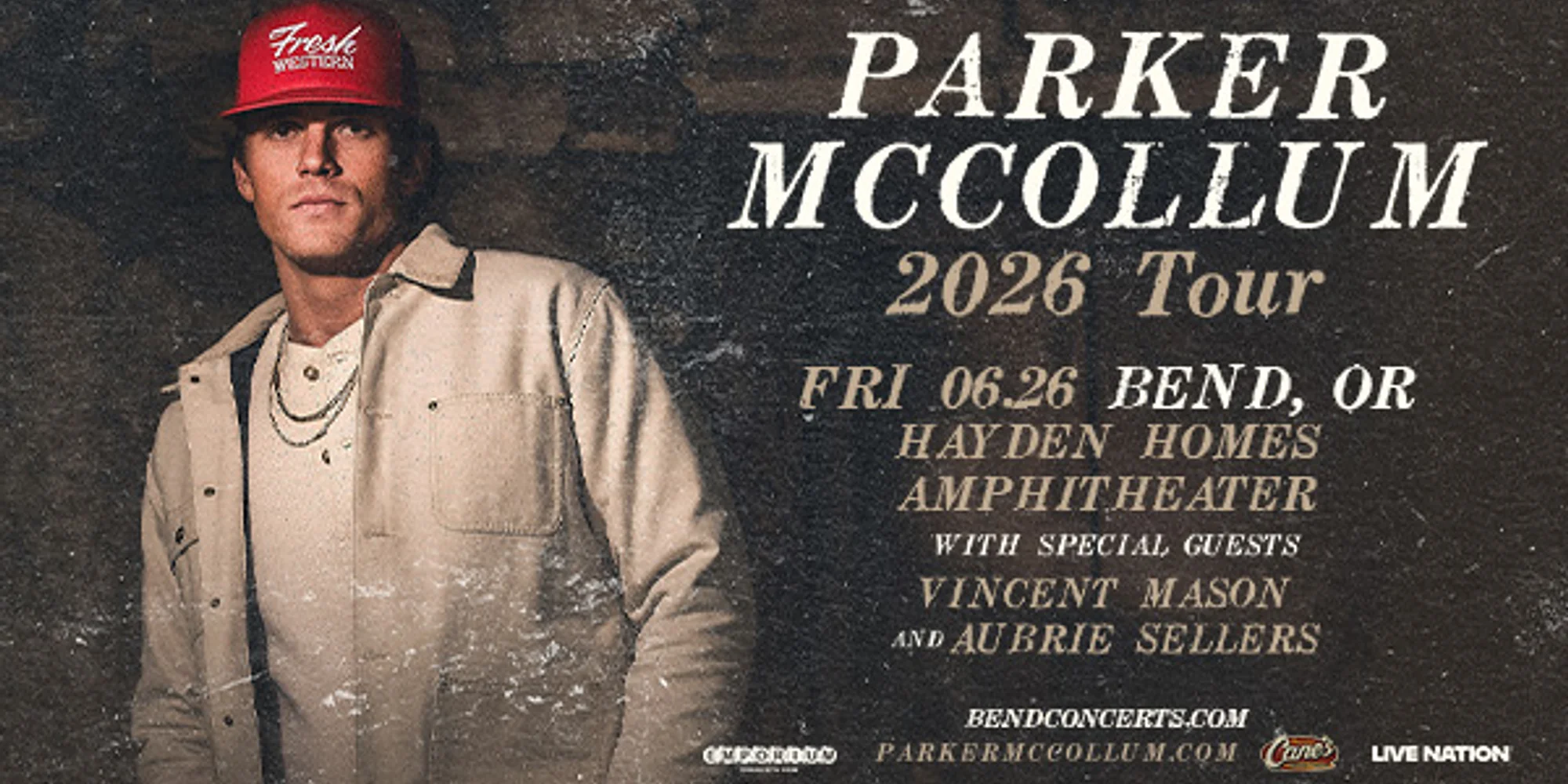 Parker McCollum Friday, June 26 Doors open at 5 p.m. Show starts at 6:30 p.m. Tickets on sale now. Available online or in-person at the Ticket Mill in the Old Mill District. Chair rentals for General Admission tickets available while supplies last. If you think you’ll want a chair at the show, we recommend securing your rental at the time of ticket purchase. Note: chair set up location may be designated on show night. Dust off those boots, Parker McCollum rides back into Hayden Homes Amphitheater on June 26 for a Texas-sized night under the Central Oregon sky. Known for his rigorous touring schedule, McCollum has taken the stage at some of the biggest venues throughout the U.S. and recently has a run with his Country music hero, George Strait. McCollum has reached the ranks of a bona fide Country music superstar by connecting with fans and critics alike through his relatable and authentic sound. The Texas-born artist has earned four consecutive #1 hits including “Pretty Heart,” “To Be Loved By You,” “Handle On You,” and “Burn It Down.” In addition, he has earned two ACM Awards, a CMT Award and three CMA Award nominations. Available now is McCollum’s self-titled fifth studio album, “PARKER MCCOLLUM,” out now. Led by his swagger-filled “What Kinda Man,” the album is an artistic achievement that shows this multi-Platinum star at his best. Produced by Frank Liddell and Eric Masse and recorded at Power Station in New York City, the 14-track collection is top to bottom, 100% authentic, Parker McCollum. The album features a varied but unified body of work where he revisits his “Permanent Headphones” which he wrote at 15, digs deep into dark storytelling with “My Blue,” and calling on his friend and fellow Texan Cody Johnson for a cover of Danny O’Keefe’s “Good Time Charlie’s Got the Blues.” EVENT DETAILS + TICKETS
