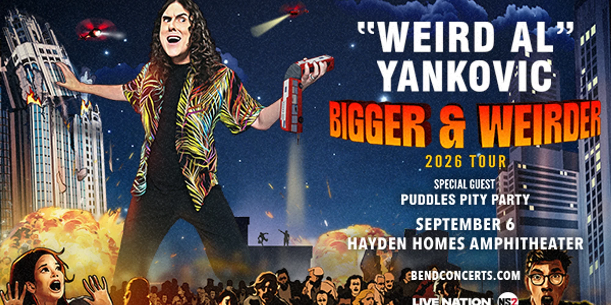 Wierd Al Yankovic With special guest Puddles Pity Party Sunday, Sept. 6 Doors open at 5:30 p.m. Show starts at 7 p.m. Tickets on sale now. Available online or in-person at the Ticket Mill in the Old Mill District. Chair rentals for General Admission tickets available while supplies last. If you think you’ll want a chair at the show, we recommend securing your rental at the time of ticket purchase. Note: chair set up location may be designated on show night. Weird Al brings his legendary full-production multimedia comedy rock show back to the concert stage with the BIGGER & WEIRDER 2026 Tour, playing his iconic hits as well as some never-performed-live-before fan favorites. Al’s long-time band is joined by four additional players to create a super-sized concert experience. “Weird Al” Yankovic is the biggest-selling comedy recording artist in history. A 5-time Grammy Award-winner, he is best known for his parodies of the biggest musical artists over the last four decades, including Madonna, Michael Jackson, Taylor Swift, Queen, U2, and Lady Gaga, all with their personal blessings. His many hits include “Amish Paradise,” “Eat It,” “Like a Surgeon,” “Smells Like Nirvana,” “Word Crimes,” and the platinum-selling “White & Nerdy.” His last album “Mandatory Fun” is the only comedy album in history to debut at #1 on the Billboard Top 200. Yankovic’s live shows have entertained audiences across the globe for generations, including appearances at such iconic venues as Radio City Music Hall, The Hollywood Bowl, Red Rocks, Carnegie Hall, Wolf Trap, The Kennedy Center and Madison Square Garden. In 2022, Yankovic produced and co-wrote the Emmy-winning biopic “WEIRD: The Al Yankovic Story,” starring Daniel Radcliffe in the title role. VIP Meet & Greet and Backstage Tour Packages are available for this show. Click here for more information on VIP packages. Special Guest: PUDDLES PITY PARTY Puddles Pity Party, the 7-foot sad clown whose golden voice is “comparable to any Grammy winner” (Los Angeles Times), has amassed over 900K YouTube subscribers and performed sold out shows around the globe including San Francisco’s Palace of Fine Arts, London’s Soho Theatre, and a residency at Caesars Palace in Las Vegas. He has performed on stage with such legends as Eric Idle, Nick Offerman, Jack Black, Maynard James Keenan, and Primus. Puddles’ one-of-a-kind “textured voice laced with melancholy” (NY Times) has been hailed as “operatic” (Boston Globe) and his show both “life-affirming” (Herald Scotland) and “hysterically funny” (LA Weekly). EVENT DETAILS + TICKETS