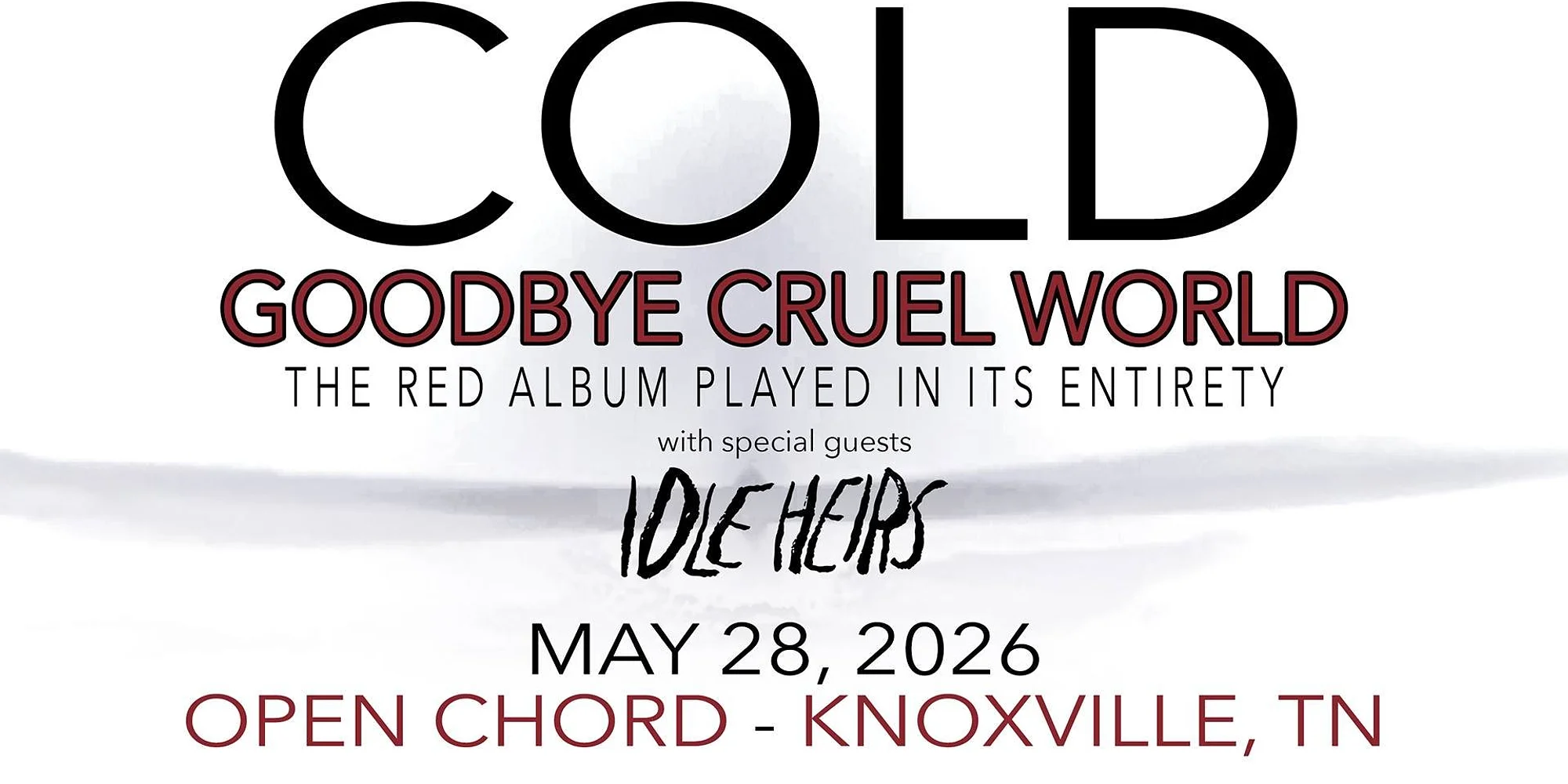 Ember South Entertainment Presents COLD w/ Idle Heirs Open Chord | Knoxville, TN Thursday, May 28th, 2026 Doors 7PM | Show 8PM | All Ages $29.50 ADV | $35 DOS BUY TICKETS Tickets go on sale Friday, January 16th at 12PM