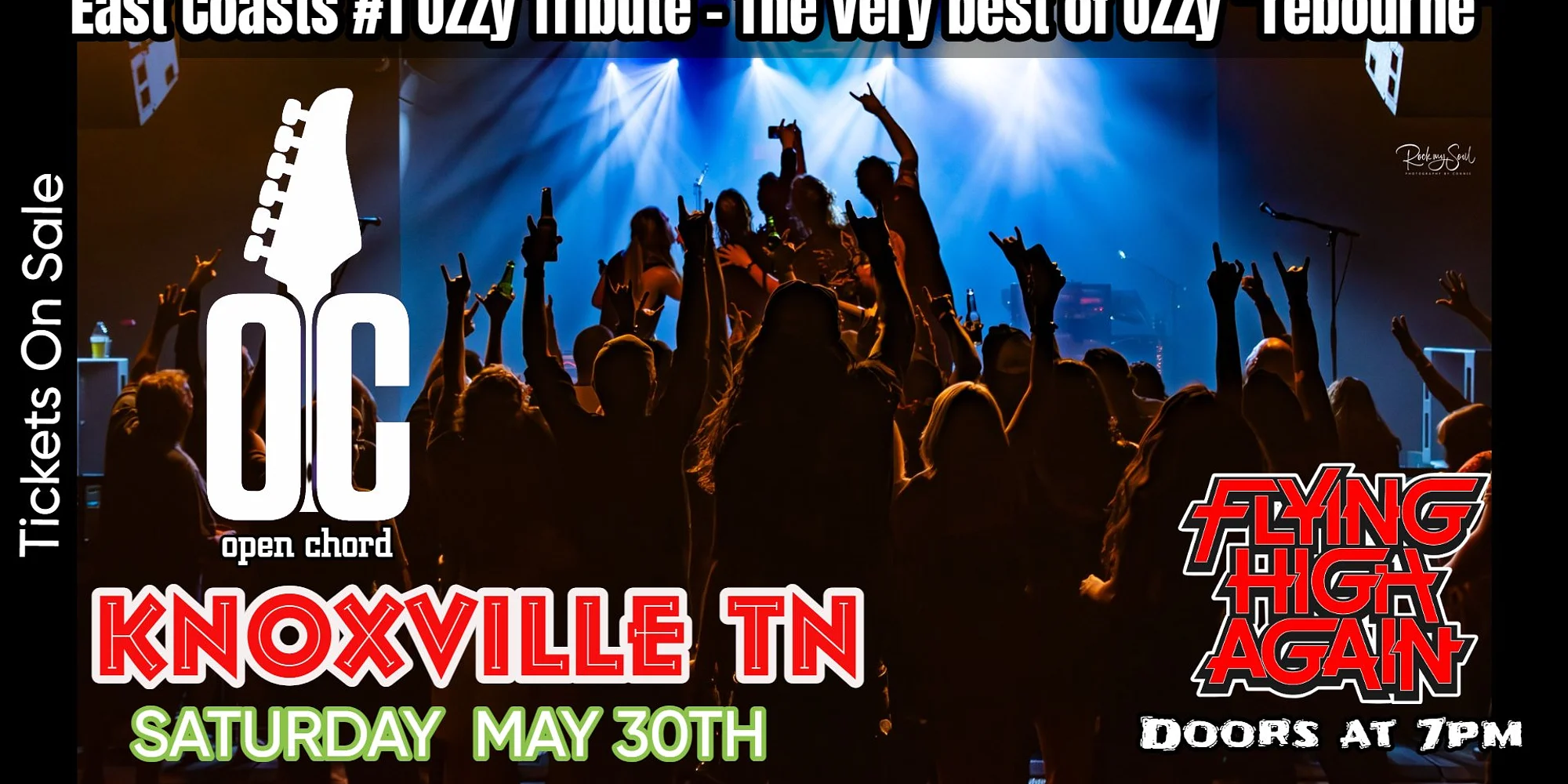 Flying High Again - OZZY Tribute 6pm Doors | 8pm Show | May 30th Advance $20 Day of Show $25 VIP Table for 2 $90 BUY TICKETS Reserved VIP tables must be purchased online. Seating may be limited. Seating is first come first serve. Flying High Again returns to the Open Chord, Saturday May 30th 2026... Relive the magic of OZZY as Flying High Again brings to stage his, sound, his visuals, and spirit.