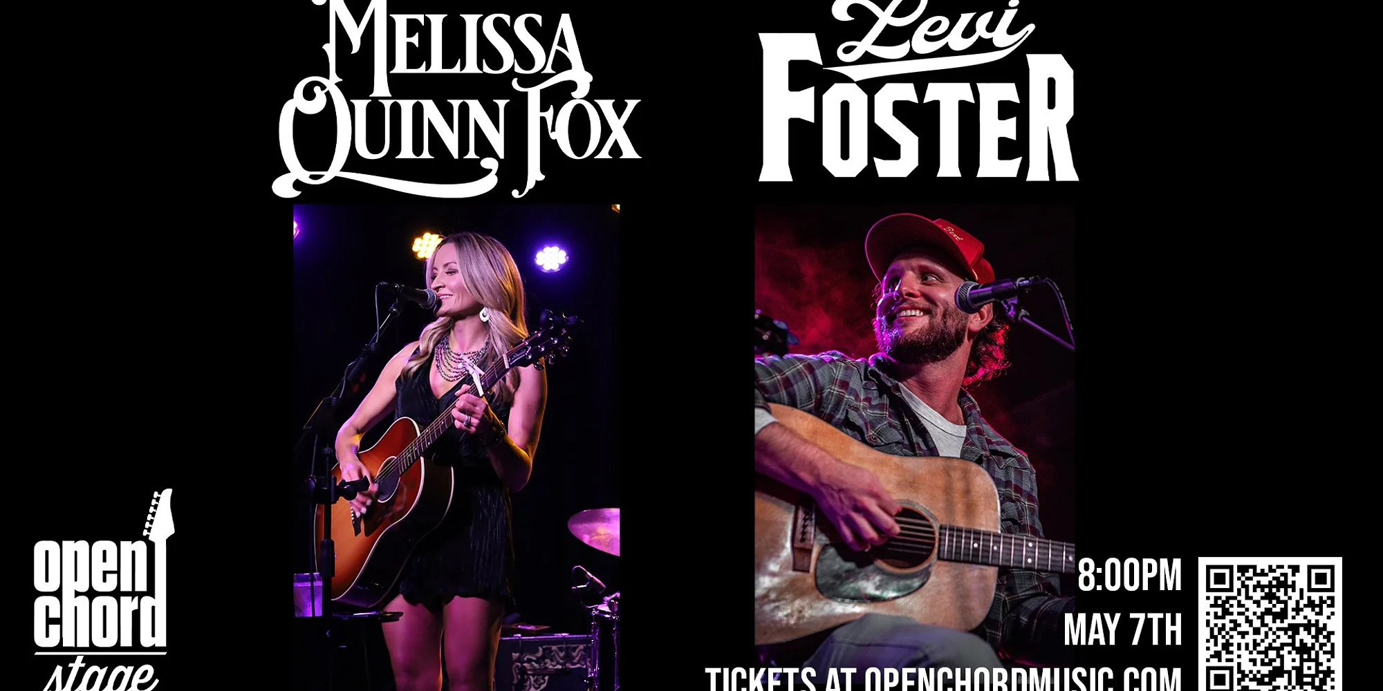 Melissa Quinn Fox & Levi Foster 6pm Doors | 8pm Show | May 7th $10 Advance $15 Day of show BUY TICKETS Seating may be limited. Seating is first come, first serve, Reserved seating is sold online only Bio's Rising Country Artist Melissa Quinn Fox is best known for her story-driven songs, captivating live performances, and soulful vocals that have been described as "gritty, gorgeous, and a sound all her own." Growing up singing in her church choir and graduating with a degree in Musical Theatre opened the door for the Pittsburgh, PA, native to travel and perform at theme parks in the United States and Europe. From Country to Alternative-Rock to Americana, Melissa draws her inspiration from the likes of Stevie Nicks, Patsy Cline, Miranda Lambert, Sheryl Crow, and Sara Evans. Since 2021, the hard-working independent artist has released 2 EPs and 15 well-received singles. Her music has been played on national and international radio and Melissa has been featured on Fox 5 and WUSA9 TV morning shows in the Washington, D.C. area being named ‘One to Watch’. Melissa is a 5-time Washington D.C. Area Musicianship Wammie Award-winner for Best Country/Americana- Song in 2024, Best Country/Americana- Song, Album, and Artist in 2023 and Best Country/Americana- Song in 2022. Melissa has opened for National Acts such as Brad Paisley, Lee Brice, Phil Vassar, Chase Bryant, and Tyler Farr, and performed at the 2022 Barefoot Country Music Festival in Wildwood, NJ and the 2023 and 2024 Carolina Country Music Festival in Myrtle Beach, SC. Currently promoting her upcoming single, Reaching For The Bottle, fans can find Melissa and her music on all social media and streaming platforms.
