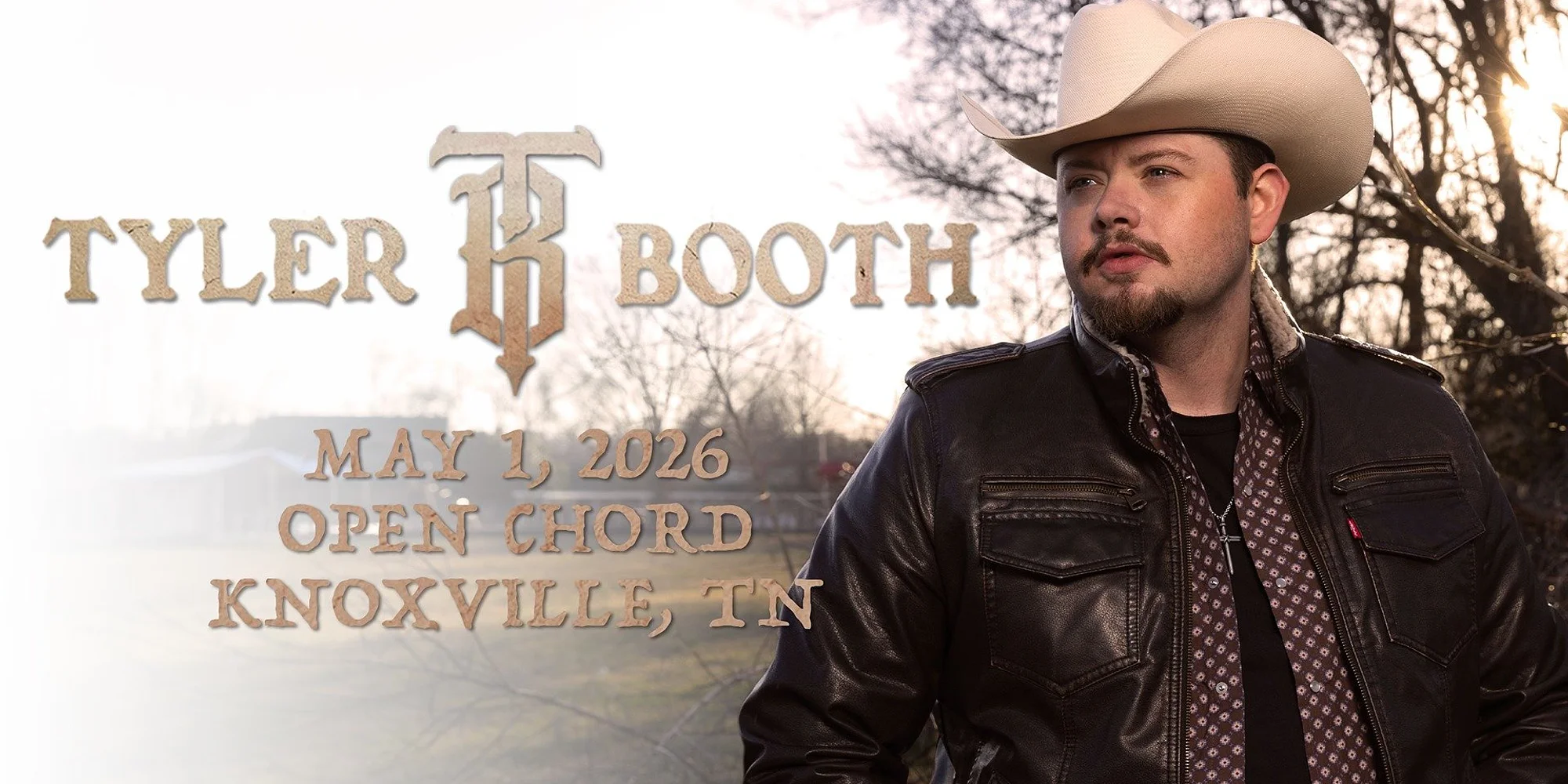 Ember South Entertainment Presents Tyler Booth Open Chord | Knoxville, TN Friday, May 1st, 2026 BUY TICKETS Doors 6PM | Show 8PM | All Ages $20 ADV | $25 DOS No refunds unless event is postponed or canceled