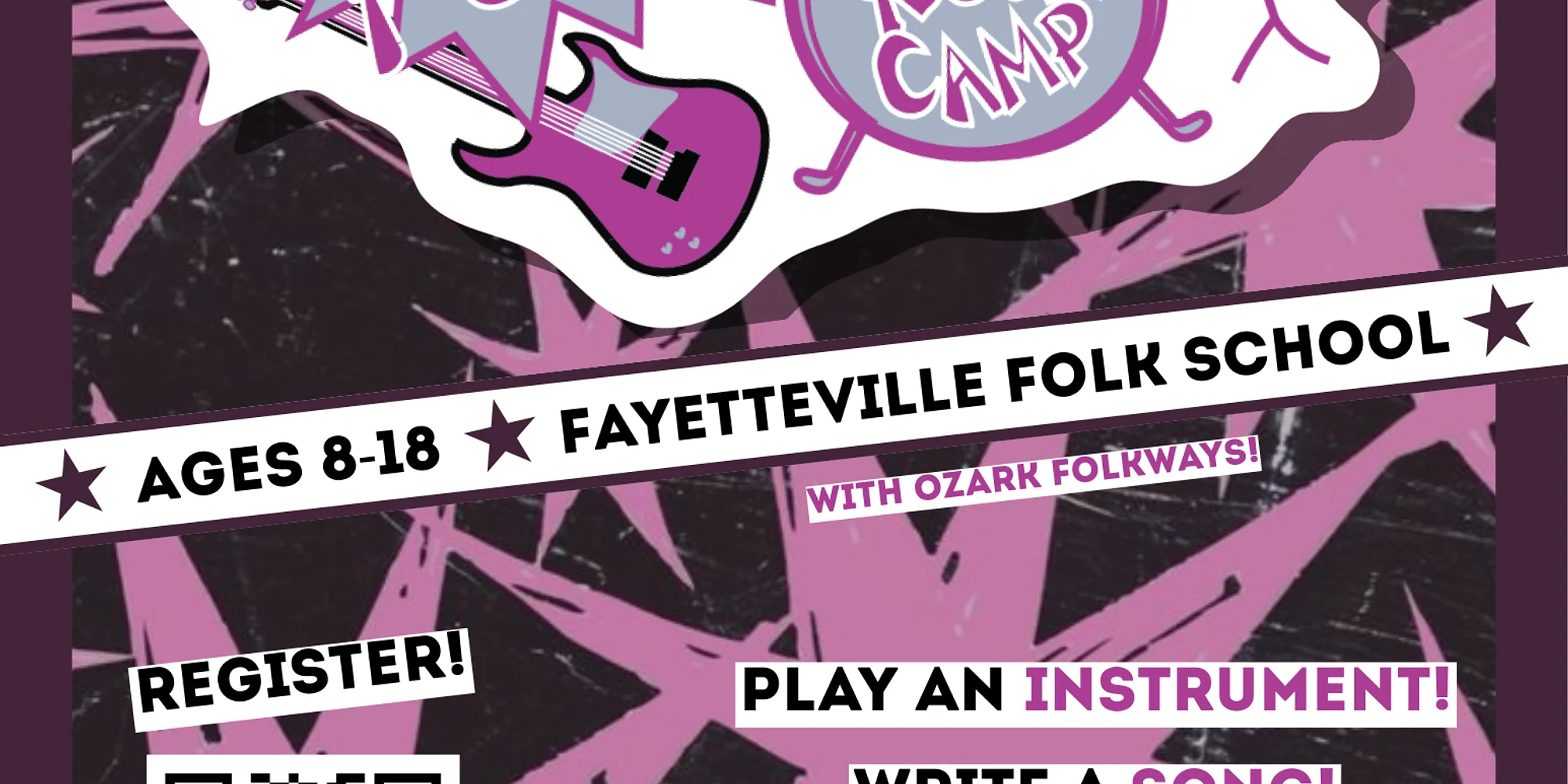 Girl Power Rock Camp is for girls or gender non-conforming youth, ages 8-18, to learn the basics or level up on their instrument of choice, collaborate on writing an original song with a band, and experience performing in front of an audience at a local venue! Campers will learn the basics of keeping time and music theory, songwriting and song structure, and an appreciation for historic women artists up to modern women pop-rock icons. Special guests and breakout sessions accent the camp to provide girls with the confidence they need to hit the stage as well as the technical and business sides of the music industry! Bands will be based on skill level and instrument preference of drums, guitar, bass, keyboards, or vocals. No experience necessary and instruments provided or campers are welcome to bring their own. Snacks will be provided. Campers should bring a sack lunch each day. Register here