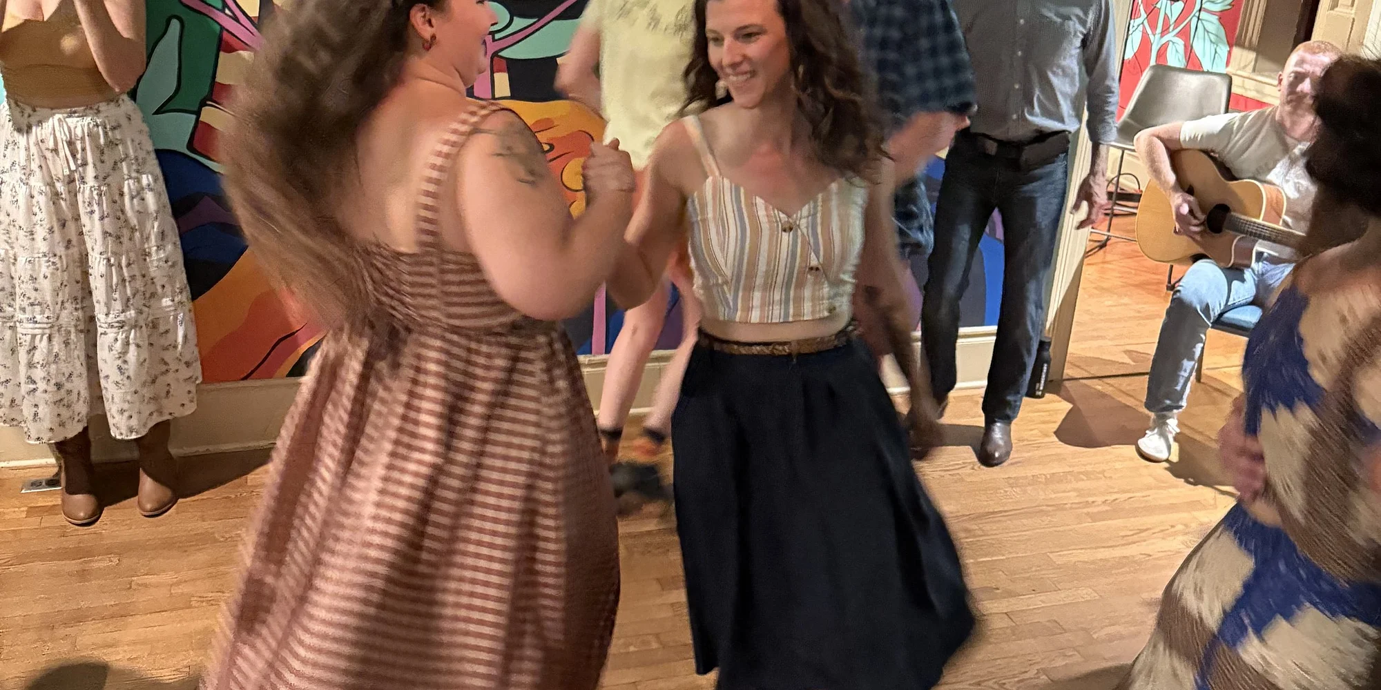 Old time jam, led by Pete Howard, begins at 6 with square dancing called by Steve Green and friends beginning at 7. The Old Time Jam and Square Dance occurs every first Tuesday from 6-9. Dancing is beginner friendly and partners are not required!