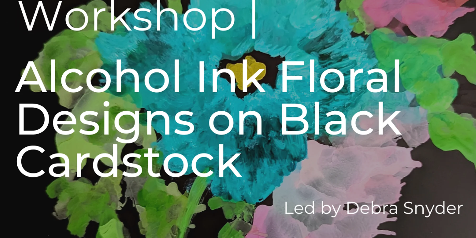 REGISTER HERE Alcohol Ink Florals on Black Cardstock Create bold, vibrant floral designs in this hands-on alcohol ink workshop focused on working on black cardstock. You’ll learn techniques to blend and control movement of the inks and mixatives to shape petals, stems, leaves, add highlights and create depth. This class is perfect for beginners and experienced artists alike, and all materials are provided. You’ll leave with finished artwork and new skills to continue exploring alcohol inks with confidence. What is Alcohol Ink? Alcohol ink is a fluid art. The inks are dye-based and extremely vibrant due to heavy pigmentation. The inks glide freely on non-porous surfaces and are easily manipulated with various techniques such as blowing, stamping or brushing. Another unique quality of alcohol ink is that the dried ink can be “revived” when coming into contact with fresh ink or blending solution, allowing for further process of the design. Alcohol ink is a fun and unique medium, allowing for creative freedom. About the teaching artist: Debra L. Snyder, Fine Artist/Potter/Instructor I began my formal art education at Parsons School of Art & Design in New York and years later studied acrylic and watercolor painting with renowned artists at the Woodstock School of Art. My favorite theme for landscapes and seascapes was inspired while living at the Jersey Shore, the Catskill Mountains and the coastal areas of New England. My first encounter with alcohol ink occurred ten years ago while traveling in Arizona. I was immediately intrigued by this fluid art, the brilliance of the pigment and its versatility. Unlike acrylic or watercolor painting, alcohol ink allows for a freedom of expression which I find unique and challenging. I have been practicing as an alcohol ink artist since then and continue to discover new techniques and applications with this exciting medium. Clay art has also been one of my passions and has kept me captivated for twenty years now. I am continually improving and exploring throwing techniques and I find the rewards of throwing clay immeasurable. www.artpartyexpress.com for more information.