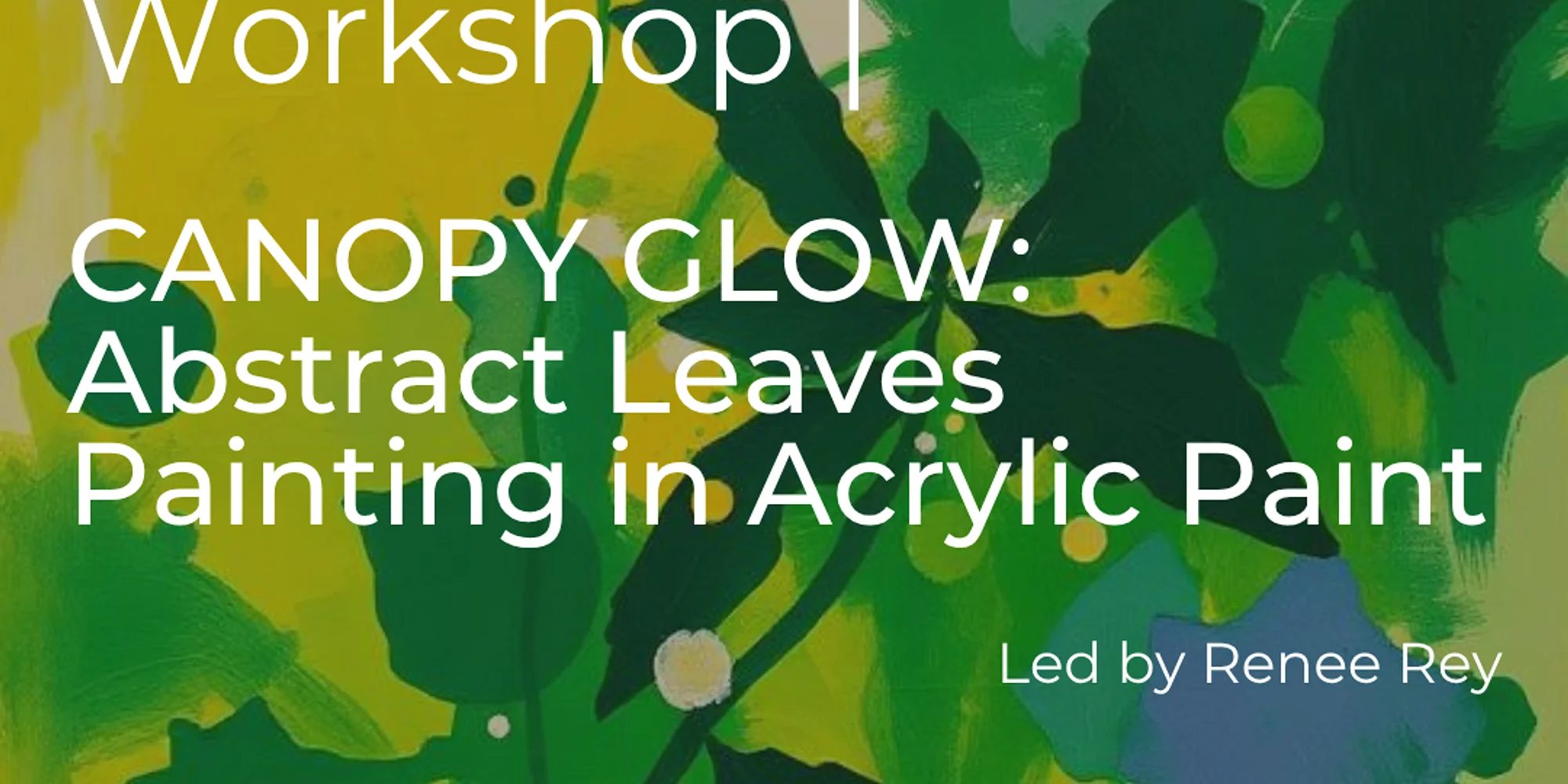 REGISTER HERE *Please don’t wait to register! Workshops that do not meet the minimum number of students 3 days prior to the session date will be canceled or rescheduled. Signing up early helps us ensure that the workshop can take place. Thank you! CANOPY GLOW: An Abstract Leaves Painting Workshop 10:30am-1:30pm Ready to loosen up, layer boldly, and let your painting bloom with light? Let your marks grow wild. Inspired by the lush greens, sunlit yellows, and overlapping leaf shapes of a living canopy, this energizing acrylic class invites you to explore leaves through abstraction—focusing on color, rhythm, and movement rather than realism. Think silhouettes, shadows, and organic forms floating across fields of vibrant color. You’ll learn how to build glowing backgrounds, layer translucent and opaque shapes, and create strong botanical forms using brushes, masking, and intuitive mark-making. Play with contrast, soft edges, and pops of unexpected color to give your work depth and vitality—like sunlight filtering through trees. Come ready to experiment, simplify forms, and paint with freedom. Celebrate Earth Day by capturing the feeling of growth, breath, and green life on the canvas. 🎨 Some painting experience recommended 🖌️ Fee includes $10 supply fee. All supplies included 🧤 Bring a smock and gloves 🍎 Bring lunch to fuel your creativity if desired Instructor Information: Renée Rey, an award-winning artist born in Sagamihara, Japan, lives and works in Delray Beach, Florida. Rey’s artwork has been recognized in national awards and exhibitions by notable museum and gallery professionals including Jade Dellinger, Director of Exhibits & Collections, Bob Rauschenberg Gallery, Fort Myers, FL; Julie Sasse, Chief Curator, Tucson Museum of Art, Tucson AZ; Erin Wright, Commissioning Editor and Producer, Los Angeles Museum of Contemporary Art, Los Angeles, CA; and Gisela Carbonell, Curator, Cornell Fine Arts Museum, . Honored with the 2024 Dina Baker Fund Grant from the Cultural Council for Palm Beach County, Rey’s work has graced galleries across the globe. Recent solo shows include Bailey Contemporary Arts Gallery, Pompano Beach, FL, Tauni De Lessep Gallery at Palm Beach Atlantic University, West Palm Beach, FL, and the Hammond Hall Gallery, Jacksonville State University, Jacksonville, AL. Her group exhibitions span the Baker Museum, Naples, FL, Flatiron Gallery, New York, NY, Studio 33, Spain, Art Brut Biennale, Netherlands, and Project Space Brut, South Korea. Rey was awarded artist residencies at Bailey Contemporary Arts (2023-2024), School of Visual Arts in New York (2019), and Sun Peaks Center for Art and Sustainability (2016). Her art is in the collections of Bristol-Myers Squibb Co., New York, NY, First Albany, New York, NY, and Wasmer Art Collection at Florida Gulf Coast University, Fort Myers, FL. She served as the International Curator for the 2021 art exhibition “Lo Cierto Es Lo Incierto” held in Soriano, Uruguay. A dynamic lect...