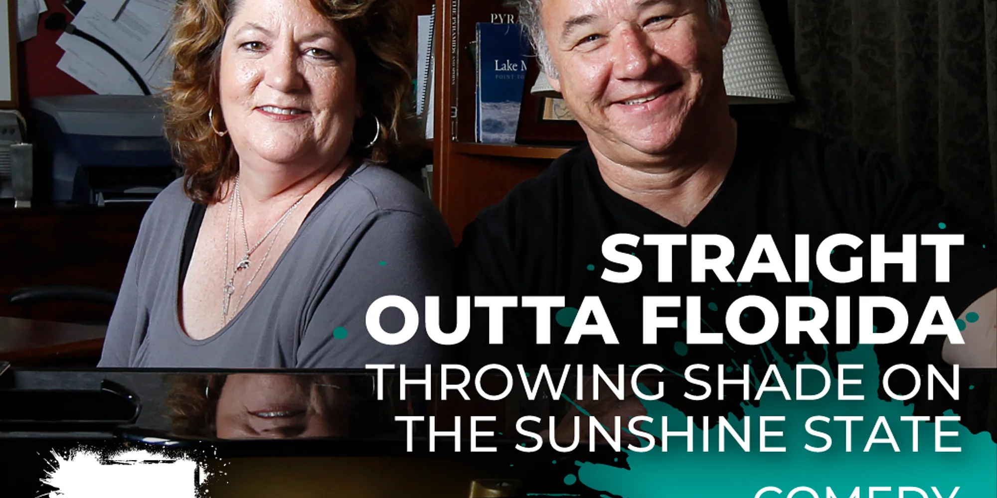 Straight Outta Florida – Throwing Shade on the Sunshine State is a 90-minute comedy filled with sketch, satire and music starring their most unforgettable characters. Whether you’ve lived in Florida, vacationed here, settled here, or just can’t resist the headlines, this new show delivers the hilarious stories we all suspected were true. Two actors, six characters, and a wildly entertaining ride through the charm and quirks of the Sunshine State. PERFORMER BIO: Compton & Bennett are Rick Compton and Betsy Bennett. They have been creating and performing original stage works for more than 25-years. Although best known for Assisted Living: The Musical®, they have written the book, composed the score, and produced more than a dozen original musical comedies with casts up to seven and scored for bands as many as eight pieces. C&B have been touring nationally for more than 15-years playing venues from El Portal in Hollywood, CA to The Tropicana Showroom in Atlantic City, NJ. Betsy Bennett is a lifelong theatre denizen, a veteran of more than 100 productions before Compton & Bennett. Betsy has played roles such as Dr. Livingston in Agnes of God, Katherine in Pippin and Mama Rose in Gypsy, for which she received 32 consecutive standing ovations. She is a product of Albion College’s theatre program and of Playwrights Horizons (Andre Bishop) in New York. Rick Compton is a writer, a musician and a creative. He has won multiple awards for magazine feature stories including humor columns, and has played piano and synth in, and musically directed dozens of pit bands. He created and franchises Via Colori®, a street painting festival held hundreds of times in 17 cities, and raising more than $5 million for important social causes. Compton & Bennett’s live performances are represented by Producers, Inc. Compton & Bennett’s shows are published and licensed by Broadway Licensing. BAND MEMBERS: Compton & Bennett: Rick Compton and Betsy Bennett. TICKETS