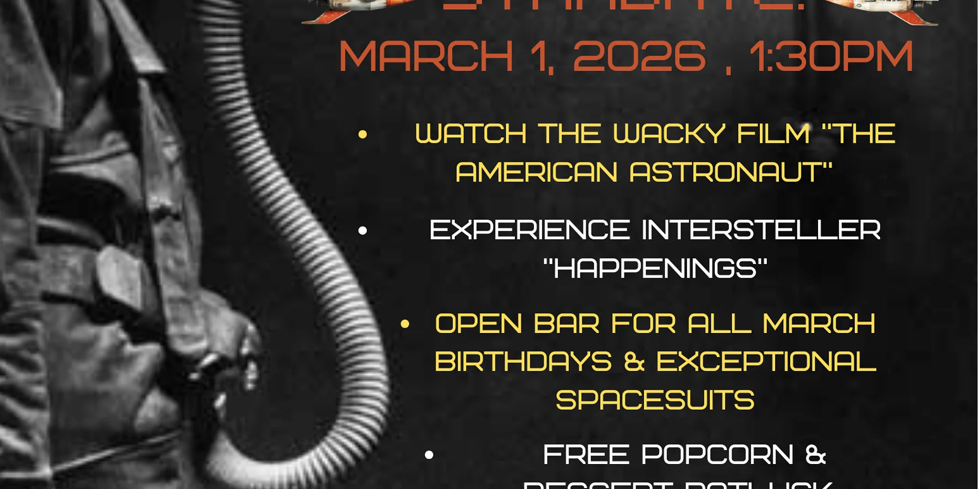 Sunday, March 1st, 1:30p-4:30pm FREE! (Suggested donation to the Paradise: $15-$100) Nita & Royce Carlson cordially invite you to gather at the Paradise, dressed in your best spacesuit, to watch a terrible/hilarious cult film, “An American Astronaut”, drink free (if you have a March birthday), and enjoy free popcorn and a dessert potluck! REVIEWS: “This musical epic is unlike anything I (or anyone I know) have ever laid eyes on.” (Ron Wells, Film Threat) “A black-and-white, cardboard set, 1930’s Buck Rogers-style musical romp. A-“ (Jason Gorber, Film Scouts) “Accepting its darkness, warmth and gentle ridiculousness, you’ll find yourself heartened, though you won’t be exactly sure why.” (Kim Morgan, Oregonian) “If Andy Warhol ever made a movie with Ed Wood, this might have been the result.” (Thomas Delapa, Boulder Weekly)
