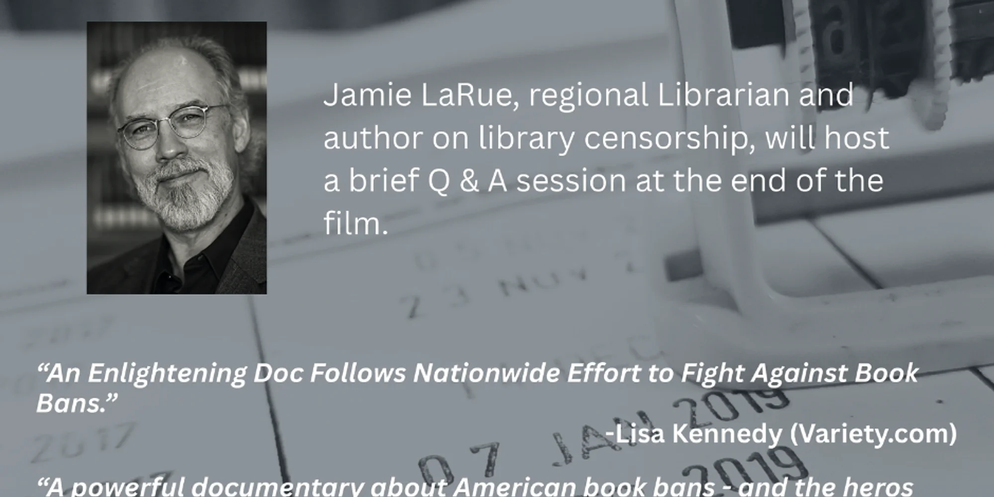 Friday, April 10th Doors 6:00pm | Film 7:00pm FREE The Delta County Libraries, The Learning Council, The Paradise Theatre, and Rocky Mtn PBS Present: A free public showing of the new documentary The Librarians will be followed by a public talkback with James LaRue, head of the Garfield County Library District, and author of the popular book, “On Censorship: A Public Librarian Examines Cancel Culture in the US.” The Librarians, a New York Times Critic’s Circle Pick was described as a “gripping… as well-crafted as it is profoundly alarming.”