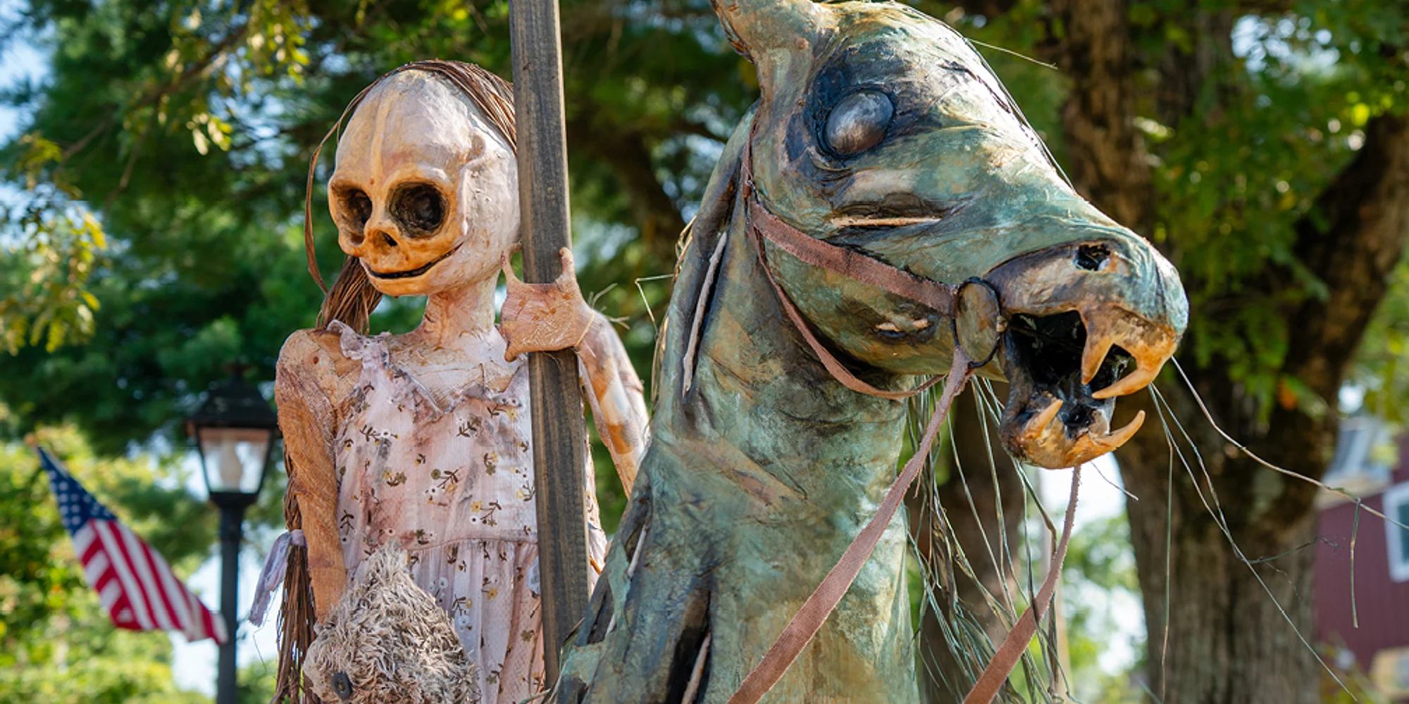 Celebrating 47 years of Scarecrows in the Village Every day from September 7 through October 25 An autumn tradition continues! For six fun-filled weeks, over 150 scarecrows line the brick pathways of our autumn-tinted Village. Some are inspired by famous characters, some are humorous, some are scary – but all of them are carefully handmade by Philly-area residents and organizations. The display is free and on view every day through October 25. Guests can vote for their favorite scarecrows via the Peddler’s Village mobile app. Creators of the winning scarecrows in each category win prizes. Scarecrow Festival September 19 & 20 A weekend of fall family fun including scarecrow-making workshops, pumpkin painting, live musical entertainment, and children’s activities. The event hours are 11 a.m. – 6 p.m. on both days. Congratulations to our 2025 Winners! Grand Prize “Dread-Go-Round” (Fright Night #34) by Lori Anne Currall Quite the Character 2.0 1st Place: “Scarequon Barkley: Bound For Super Bowl LIX” (#125) by Christy St. John 2nd Place: “Rosie the Robot: Better than Roomba” (#38) by Dave Doler 3rd Place: “Gershwin’s Rhapsody in BOO!” (#71) by Joseph LePosa, Rose LePosa None 4th Place: “Sadderday” (#65) by John Kalnin, Bill Rawley 5th Place: “Strawsquatch, Hide and Seek World Champion” (#140) by Valerie Yoder, Bret Phillips 6th Place: “Chicken Jockey!” (#50) by Teresa Gledhill Ron Gledhill, Leo Gledhill Honorable Mention: “Jeepers Creepers” (#58) by Sandra Holliday, Bette Collins Honorable Mention: “Muppets: Autumn Elegance” (#64) by Christian Kalczewski Traditional 1st Place: “Jack O’Lantern, Scarecrow for Hire” (#35) by Lori Anne Currall, Alex Hartman-Currall 2nd Place: “Clowning Around” (#17) by Christopher Castineira, Kaitlin, Saylor, Cole 3rd Place: “The Gardener” (#123) by Sarah Smisek 4th Place: “Ray of Sunshine” (#99) by Melanie Parsons, Matt Parsons 5th Place: “Audrey Bones” (#145) by Brooke Mitchell 6th Place: “Wise Old Owl” (#3) by Jenna Alvino, New Hope Academy Honorable Mention: “Scaregrow” (#21) by Mallory Cibort, Delaware Valley University Honorable Mention: “Mike Wazowski the Scarecrow” (#113) by John Rombach, Sloane Rombach Carecrow “In Your Corner” 1st Place: “Emotional Snoopport”” (#136) by Brooke Wasser, Ron Sharma, Violet Sharma, Jack Wasser-Slyhoff, Theo Sharma, Sophie Sharma The Wasser-Sharma Family 2nd Place: “Melinda – Belinda, BFF to the Good Witch Galinda” (#29) by Eileen Conner 3rd Place: “Have Courage, and BEE Kind” (#51) by Jilien Gordon, Chad Gordon & Arden Gordon, The Thistle & The Bee 4th Place: “Counselor of the Corn!” (#77) by Stefanie Marky, Emmalyn Marky, Rylan Marky, Milestones Counseling 5th Place: “Oscarina the Gleeful” (#75) by Ross Manders, Sophia Manders 6th Place: “We Will Remember For You” (#107) by Donna Reeves, Chandler Hall Memory Care Honorable Mention: “Every Color – Every Cancer – Every Life” (#39) by Kelli Donlen, Liz Snyder, Relay For Life Fairless Hills Hono...