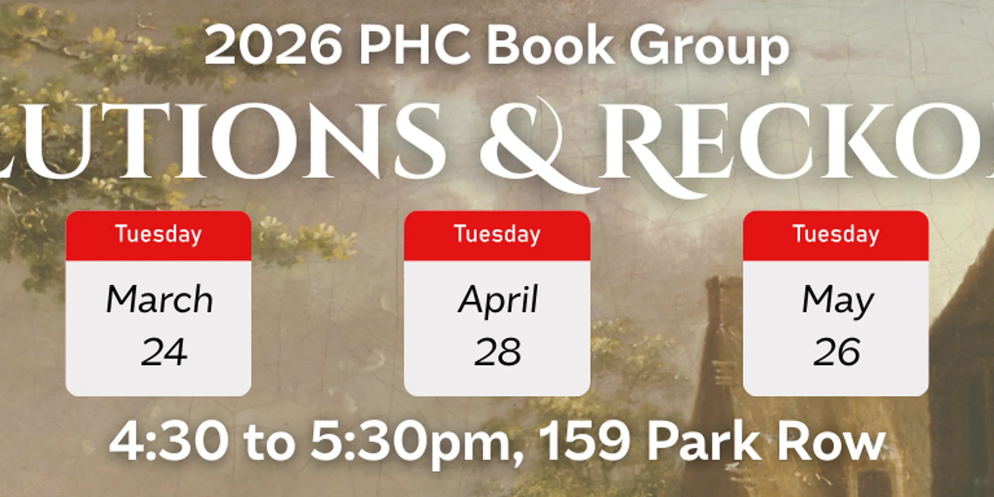 Back by popular demand, PHC’s 2026 book group will focus its monthly meetings around the theme ‘Revolutions and Reckonings’ in recognition of the 250th anniversary of the Declaration of Independence. February 24: Beginnings Handout: “Of Wars and Revolutions,” from These Truths: A History of the United States, Jill Lepore (2017) “Rip Van Winkle,” Washington Irving (1819), https://www.gutenberg.org/files/60976/60976-h/60976-h.htm Handout: Legends of the Province House (“Lady Eleanore’s Mantle,” “Howe’s Masquerade,” “Edward Randolph’s Portrait,” and “Old Esther Dudley”), Nathaniel Hawthorne (1837) For a full list of reading materials for all sessions, please see: 2026 PHC Book Group Free to join, just email Larissa to register: director@pejepscothistorical.org