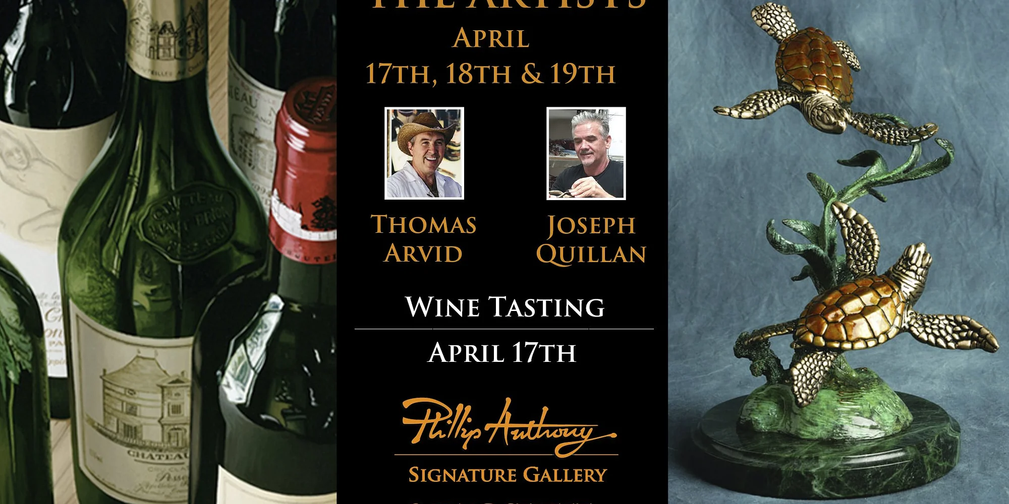 April 17th 7 pm - 10 pm - Meet the Artist & Wine Tasting April 18th 7 pm - 10 pm - Meet the Artist April 19th 12 pm - 4 pm Meet The Artist RSVP