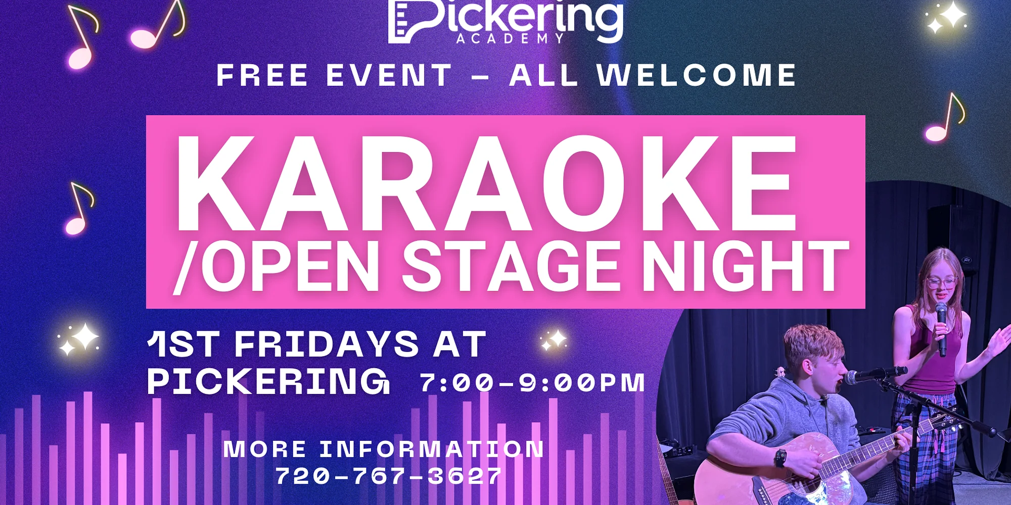 1st Friday Open Mic / Karaoke Night Friday, May 1 | 7–9 PM FREE EVENT – All Are Welcome! Ready to take the stage… or just cheer from the crowd? 🎶✨ Join us for 1st Friday Open Mic / Karaoke Night at Pickering Academy — a joyful, low-pressure evening of music, laughter, creativity, and community. Sing your favorite song. Play an instrument. Tell jokes. Share a poem. Try something new. Or simply come enjoy an encouraging audience and great vibes. Whether you’re a seasoned performer or stepping on stage for the very first time, this night is for YOU. 🎭 What to Expect: • Karaoke & open mic performances • Singers, musicians, comedians, storytellers, and surprise talents • A friendly, supportive crowd • Zero judgment — just fun, courage, and connection 📍 Location: Pickering Academy 6920 S Jordan Rd., Suite G Centennial, CO 80112 🕖 Time: 7–9 PM 💛 Cost: FREE Bring your friends, bring your family, bring your boldest self — or just bring your applause. At Pickering, everyone gets a chance to shine. 🌟