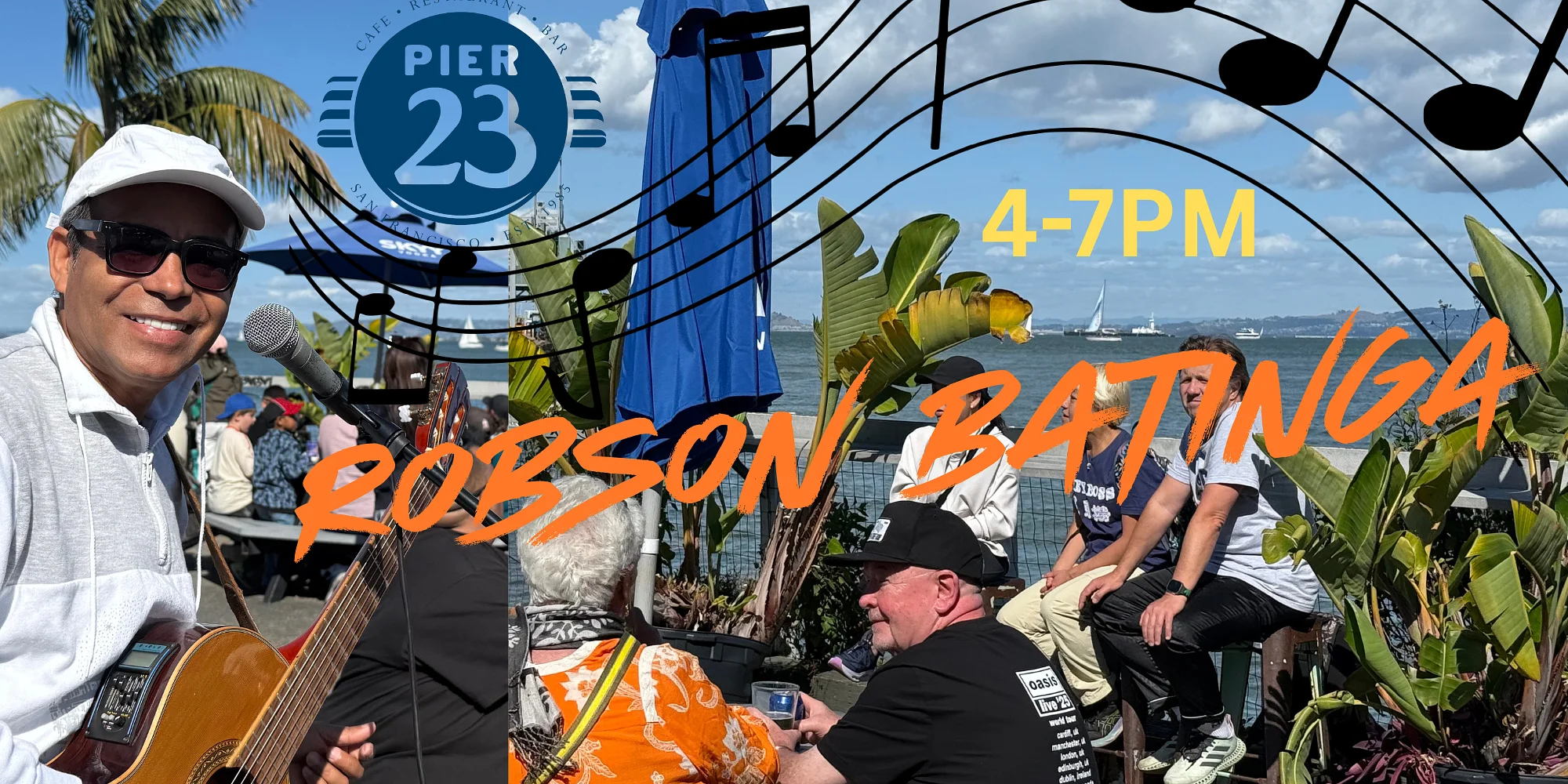 An artist from the Brazilian northeast, with over 40 years of musical experience, singer, composer, multi-instrumentalist, guitarist since childhood, Robson Batinga is a wonderful addition to our beautiful scenery. Join us at Pier 23 Cafe from 4pm-7pm to relax and enjoy Robson’s vibes. We can’t wait to see you!