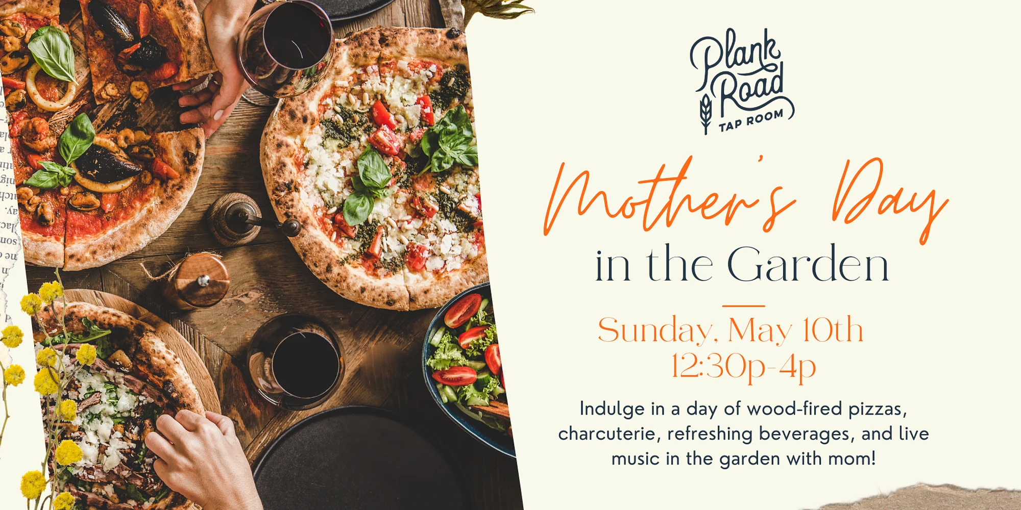 This Mother's Day, indulge in a day of wood-fired pizzas, charcuterie, and refreshing beverages in the garden with mom! No reservations needed. Seating is first come first served, but you're more than welcome to bring lawn chairs or blankets. Sundays are Family friendly! Pizzas by: Kurbside Pizza Charcuterie by: Suburban Graze Music by: Matt Petko Featured Drink: Spring Sangria *Please note that this is a family friendly day and due to the amount of children that may be on site, we highly recommend that you leave the dogs at home for this event. All children must be supervised by a parent at all times. To help everyone enjoy the day, we kindly ask guests to limit their visit to 2 hours during our Mother’s Day event. Thank you for helping us make room for all the celebrations! *Parking: Our on-site parking is limited to 41 spots. If we are full, we move to a One in, One out system. Parking is not allowed on the road, Klein’s Market, or the Fire Station. We cannot serve anyone that is not parked on our property. Please consider carpooling or taking a ride share. #GardenDayWithMom #WoodFiredPizza #LiveMusic