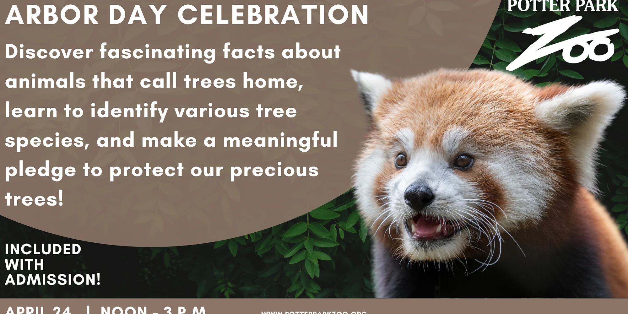 Celebrate Arbor Day at Potter Park Zoo! Calling all tree lovers and nature enthusiasts! Join us Friday, April 24, 2026, for a day dedicated to celebrating the trees that sustain us and the wildlife that call them home. This event is included with standard zoo admission! What’s Happening? Interactive Conservation Stations – Learn about tree-dwelling animals, identify different tree species, and discover how you can help protect our forests. Take Home a Tree – Pick up a free tree sapling (while supplies last) and plant your own piece of conservation! Make a Pledge – Commit to small actions that make a big impact on trees and our planet. Mark your calendars and celebrate Arbor Day with us at Potter Park Zoo!