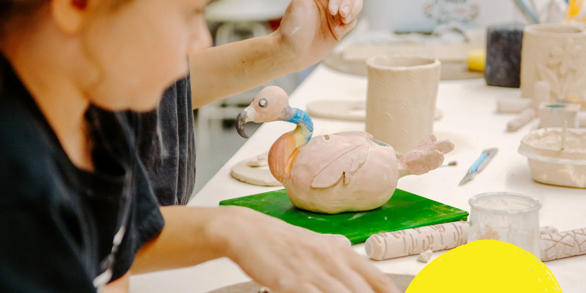 This pottery class is designed for young artists ages 6-14 to have the opportunity to explore the world of clay with the focus primarily on hand-building techniques. Over three consecutive sessions, they’ll learn to shape, sculpt, and create unique pieces using methods like pinching, coiling, and slab construction, encouraging their creativity and fine motor skills. As a special highlight, the class also offers a chance to experience the potter’s wheel, where children can feel the excitement of forming a vessel on a spinning surface. After their creations have been carefully crafted, they’ll undergo a bisque firing, turning the clay into sturdy, unglazed pottery. In the final session, students will apply colorful glazes to their pieces, which will then be fired again, resulting in beautiful, finished artworks. This combination of traditional hand-building, introductory wheel work, and the complete pottery process makes the class both fun and educational, providing a well-rounded introduction to the art of pottery. My name is Anna Wilkins, and I am a proud native Wyomingite, now residing in Summerville. My passion for art, specifically in ceramics, began in high school and deepened as I took college courses in ceramics and worked at the university studio as an onsite manager at Montana State University of Billings. I graduated with a B.A. in psychology, but continued my love for the ceramics world by teaching ceramics to kids at a summer camp in Maine. Then my husband and I began traveling around the U.S. for work, and later took a sabbatical to travel internationally, where I expanded my ceramics education by creating in places like Japan, Portugal, and Mexico. I’m excited to get back into teaching ceramics because it brings me immense joy to inspire others, spread my knowledge of pottery, and share the art of ceramics with people eager to learn and create. *Pottery must be picked up within 90 days from the last day of class. The teacher will email you to let you know when it is ready for pick up. Any artwork not picked up within this timeframe will be donated or discarded.*