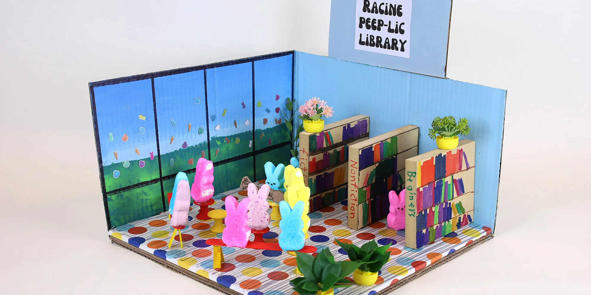 Marshmallow Tales: PEEPS® Story Time Bowie Thompson Racine Peep-lic Library, 2023 PEEPS® Brand marshmallow candy, found bottle caps, wood, wrapping paper, paint, stickers, craft sticks, MDF board, artificial plants, marker, digital inkjet print, and cardboard Photography: Tyler Potter Presented in partnership with the Racine Public Library, RAM Docent and storyteller extraordinaire Gail Navratil will be in the RAM galleries from 10:00 to 11:00 am on Friday, April 17, to share a few springtime stories—perfect for kids ages 2–5. You can also create a sweet make-and-take art project inspired by RAM PEEPS® Brand Art Exhibition 2026 while listening to the stories! Marshmallow Tales is included with paid RAM admission.
