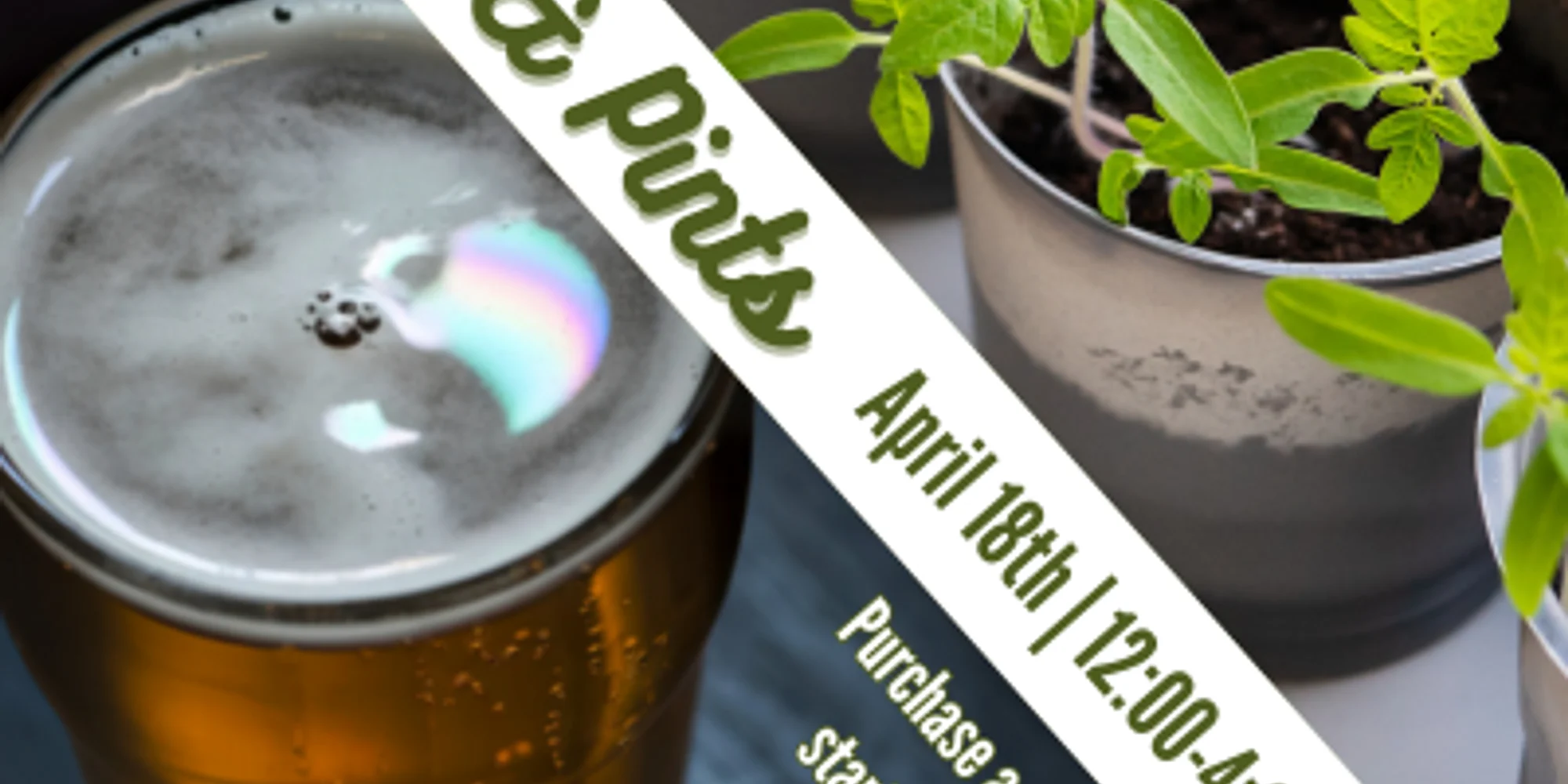 April 18th from 12-4:00. An earth day celebration. Purchase a pint and get a free starter veggie plant. Purchase more to receive a ticket per pint for a raffle entry to win a larger house plant. Enjoy a pop up sale that day in the Social Scene, featuring annuals, perennials, herbs, and house plants.