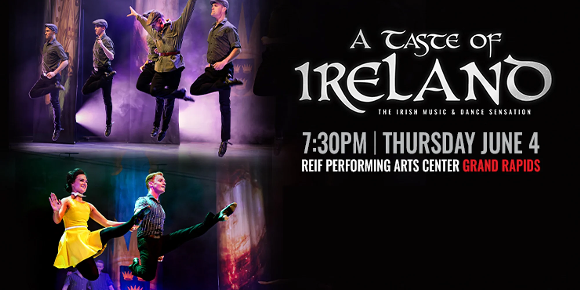 Pricing is as follows: Advance Price (All Ages) · Purple: $65 + fees · Green: $55 + fees · Yellow: $45 + fees Door Price (All Ages) · Purple: $70 + fees · Green: $60 + fees · Yellow: $50 + fees All patrons require a ticket, regardless of age (includes lap children). Direct from Off-Broadway and London’s West End, the internationally acclaimed A Taste of Ireland Company returns with its flagship production — ‘A Taste of Ireland — The Irish Music & Dance Sensation’ — touring the USA in 2026. Laugh, cry, and jig into the night with a production that is Celtic, for this generation. Performed by former World Irish dance champions, and featuring dancers from Lord of the Dance, Riverdance, and the recent West End cast of Éireann, ‘A Taste of Ireland’ brings the spirit and energy of modern Ireland to life with a pint of Irish wit. Watch world-class performers blend melodic folk mash-ups, live jaw-dropping acapella tap battles, and heartfelt storytelling in a live celebration of Irish music and dance. Featuring revamped classics of Danny Boy, Tell Me Ma, Wild Rover, and many more well-known songs, the show’s reimagined contemporary score blossoms alongside the brash Irish charm of the live dance cast. ‘A Taste of Ireland’ merges cultural traditions, modern flair, and craic galore to deliver a performance that has been leaving audiences across the globe jigging on their feet for the last decade. With over one hundred and fifty 5-star Facebook reviews, ‘A Taste of Ireland’ is exactly what it promises: a taste of everything you love about Ireland — with a generous helping of more. ‘A Taste of Ireland’ is a show with 100% live singing and dancing that fuses storytelling, modern Irish dance, tap, and contemporary performance to bring Ireland’s stories to life on stage. With a strictly limited USA run, see ‘A Taste of Ireland’ in 2026 for limited performances before it takes off around the globe once again. ‘Witness the birth of a nation told through rhythm and beat, with the cry of the Vikings as they were brought to defeat, the rise and fall of the rebellion the show tells the tale, trapped were the Irish, watch them dance from the jail. For the nation fought free from Dundalk to Tralee, they sing and they dance through the night full of glee. For Ireland, there was not a nation quite like her, hold on to your seat, feel Ireland’s passion and fire.’ **Please note: musical instruments are subject to change from performance to performance All tickets are final sale and cannot be exchanged or refunded. In the case of an event cancellation without a rescheduled date, a refund will be issued. By purchasing a ticket to this event, you agree to this purchase policy. Before purchasing your tickets, we urge you to confirm the title, time and location of the event.