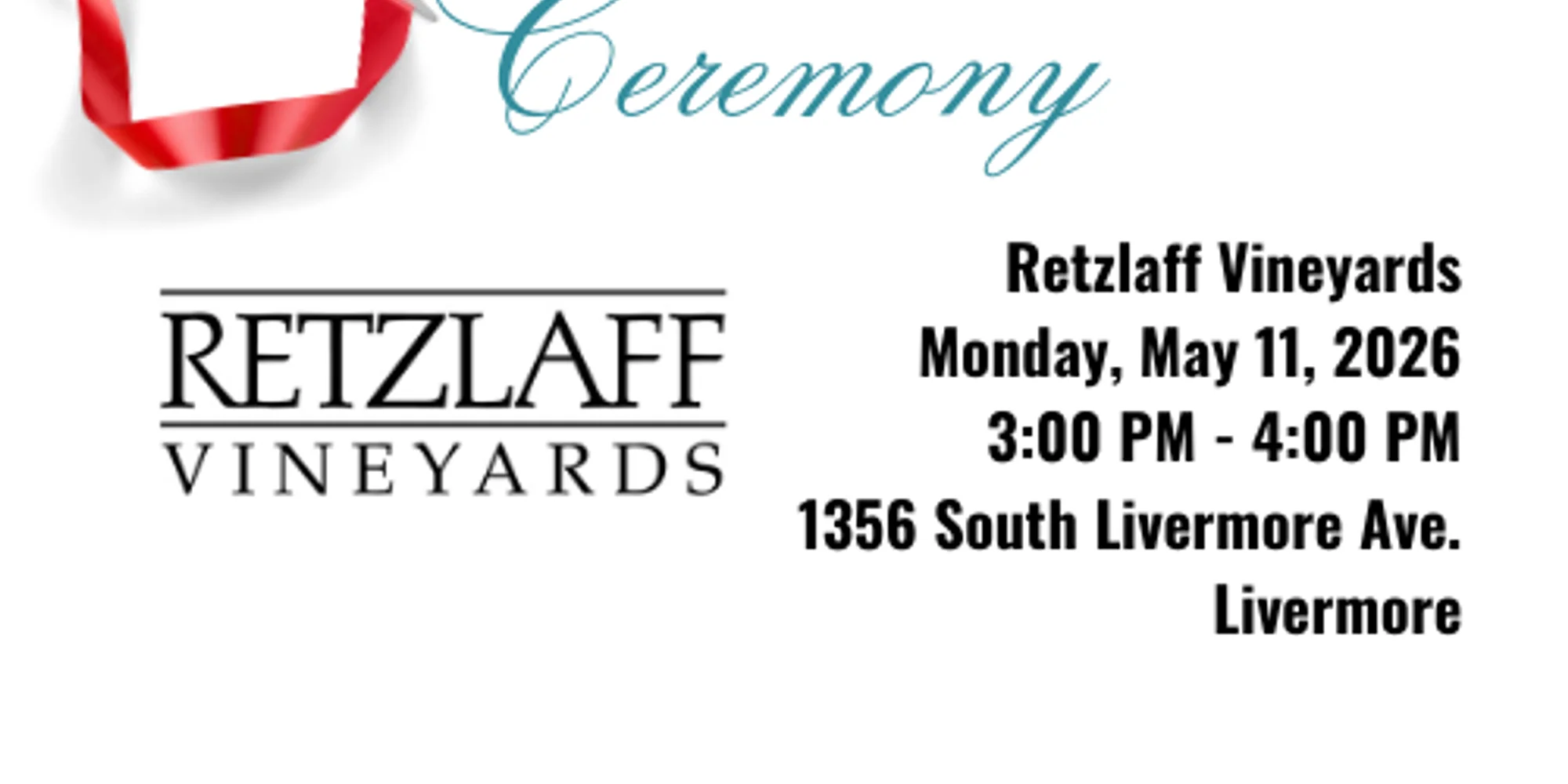 @ Retzlaff Vineyards is celebrating 50 years of business! Retzlaff Wine Club members and members of the Livermore Chamber of Commerce are invited to join us as we mark this amazing milestone. Mark your calendars to join us May 11th at 3 pm. Not yet a member? Join the Retzlaff Wine Club and enjoy complimentary picnic space and quarterly tastings! Learn More Add to calendar Google Calendar iCalendar Outlook 365 Outlook Live